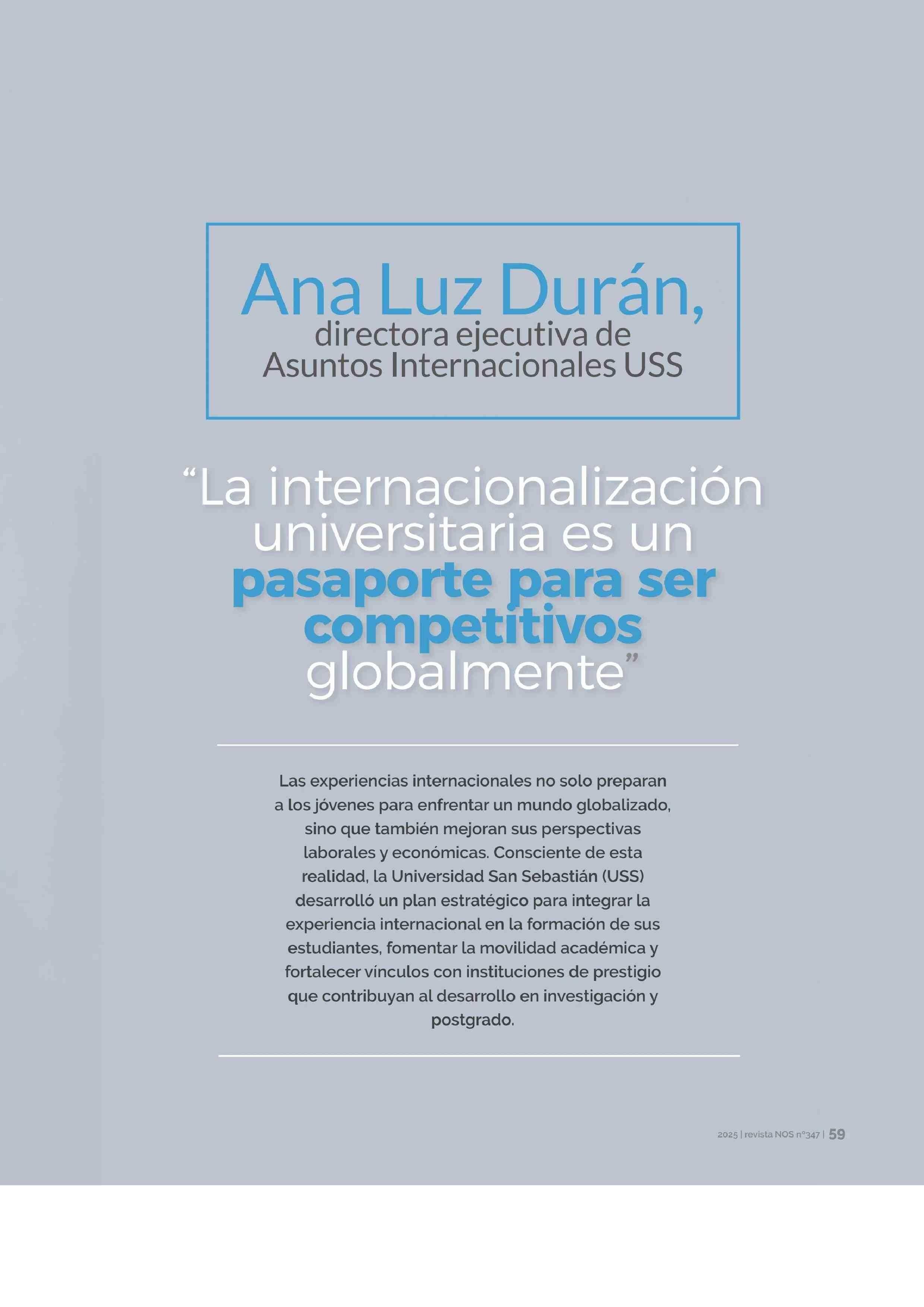 Ana Luz Durán, directora ejecutiva de Asuntos Internacionales USS 03-02-2025 Revista Nos Concepción |