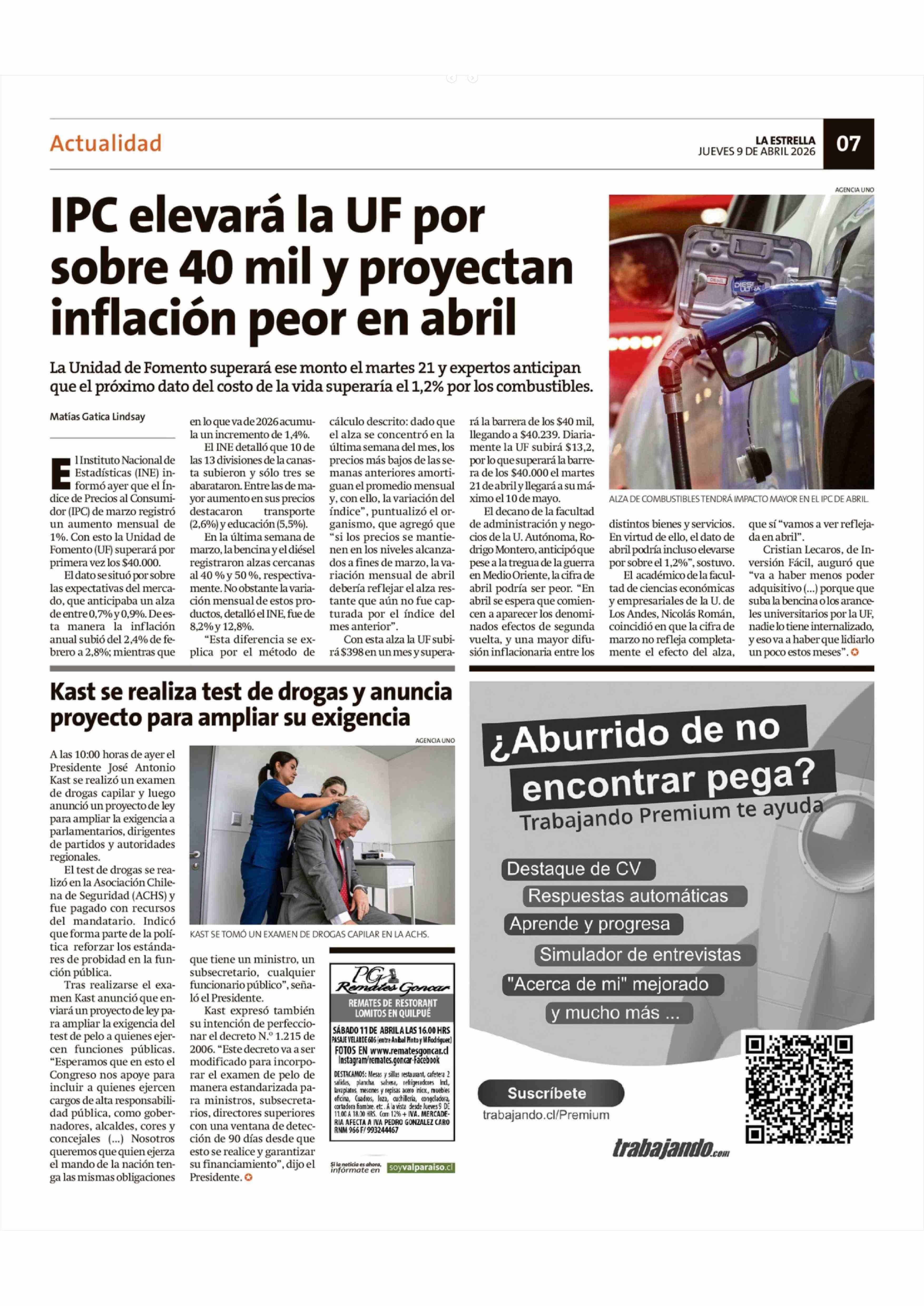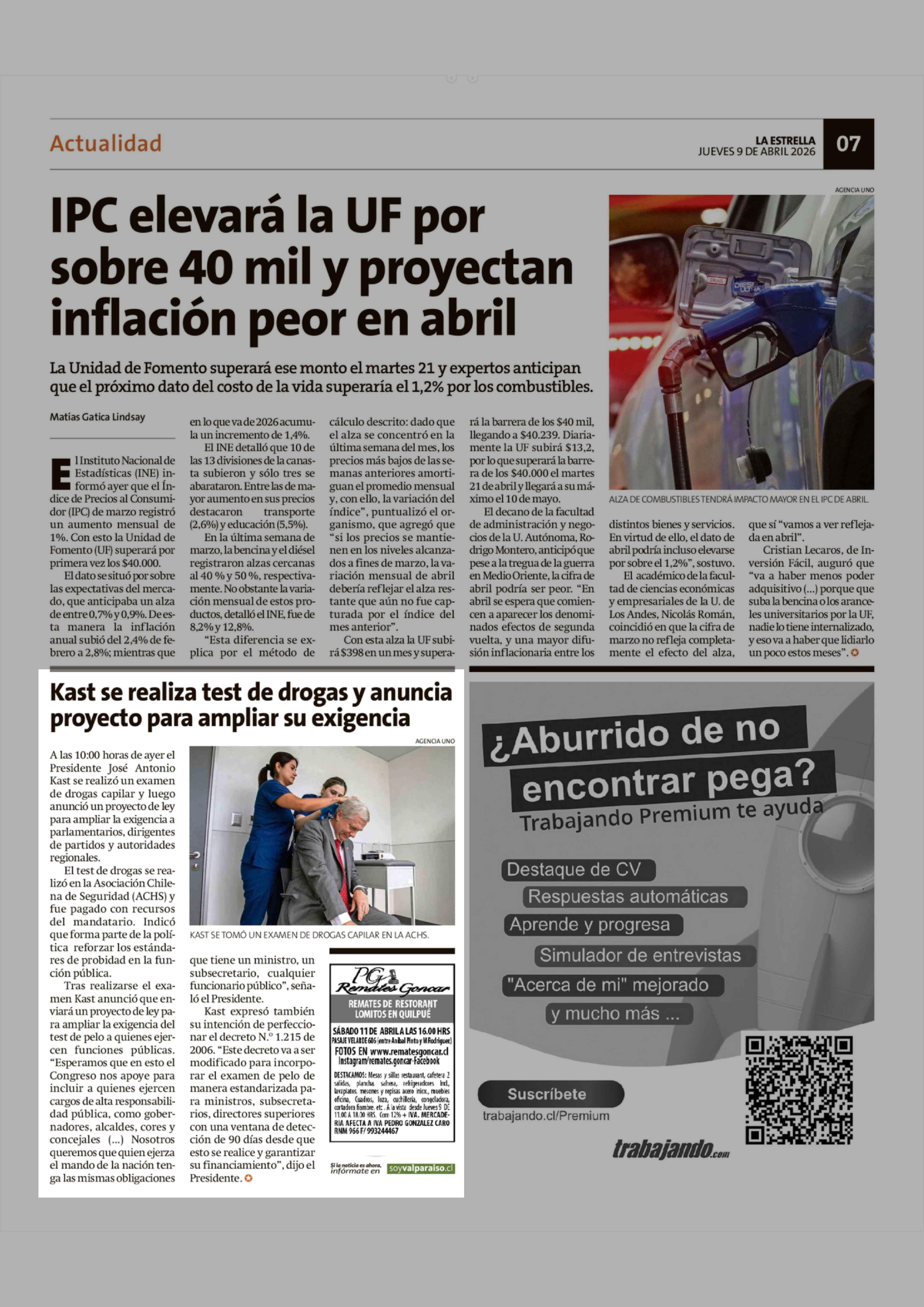 Kast se realiza test de drogas y anuncia proyecto para ampliar su exigencia 09-04-2026 La Estrella de Valparaíso |