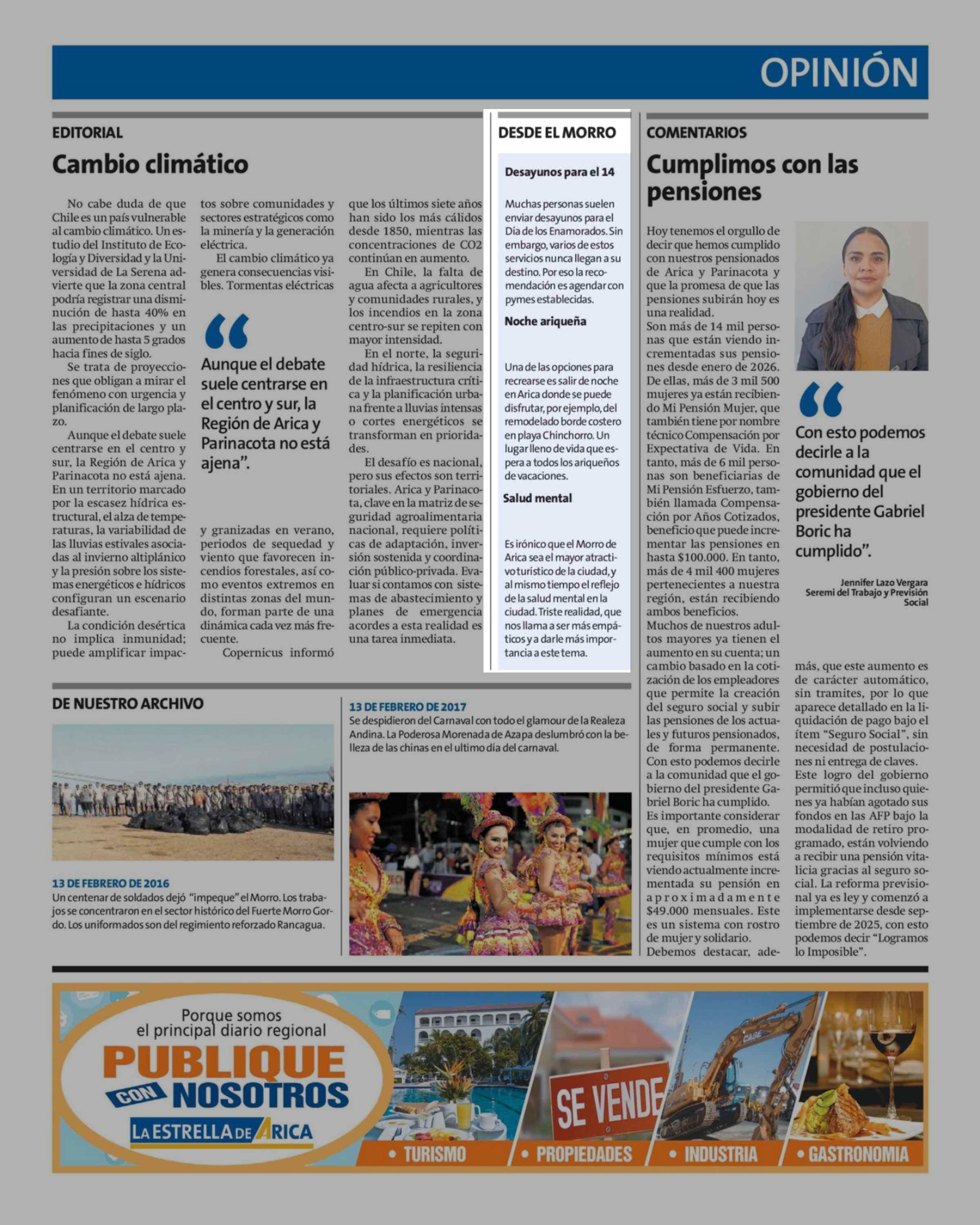 Fecha: 13-02-2026 Sector: Noticia general Región: Región de Arica y Parinacota