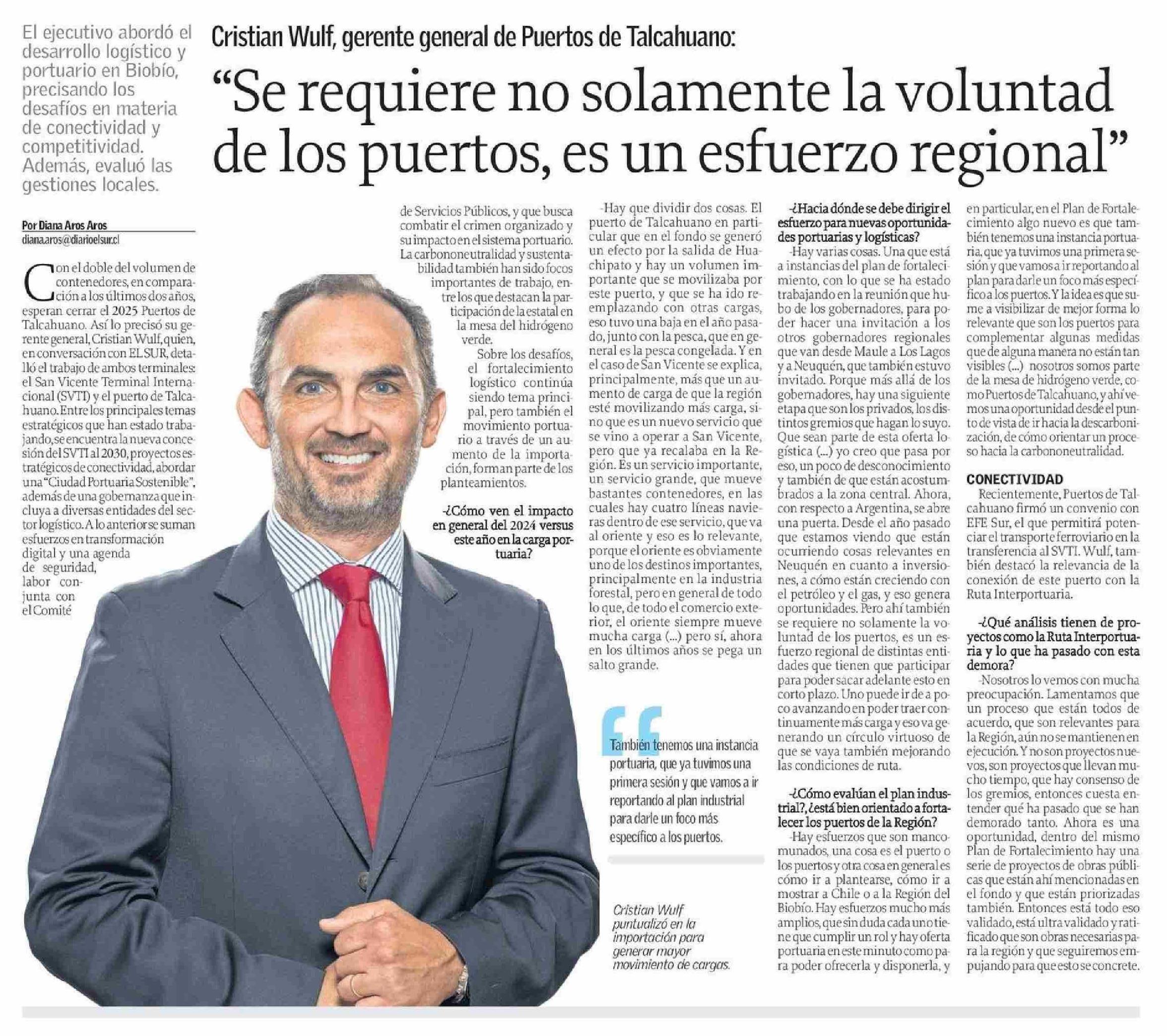 "Se requiere no solamente la voluntad de los puertos, es un esfuerzo regional" 14-06-2025 El Sur |