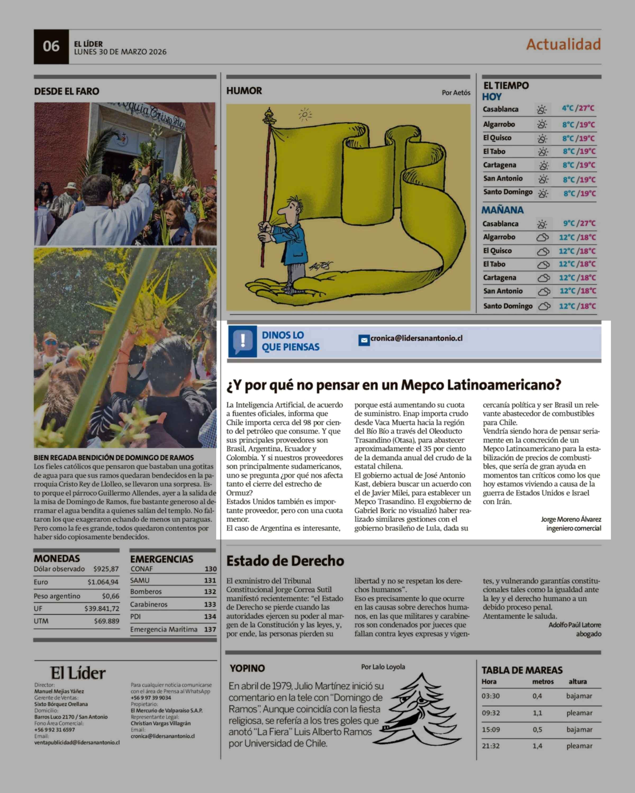 Columnas de Opinión: ¿Y por qué no pensar en un Mepco Latinoamericano? 30-03-2026 El Líder |