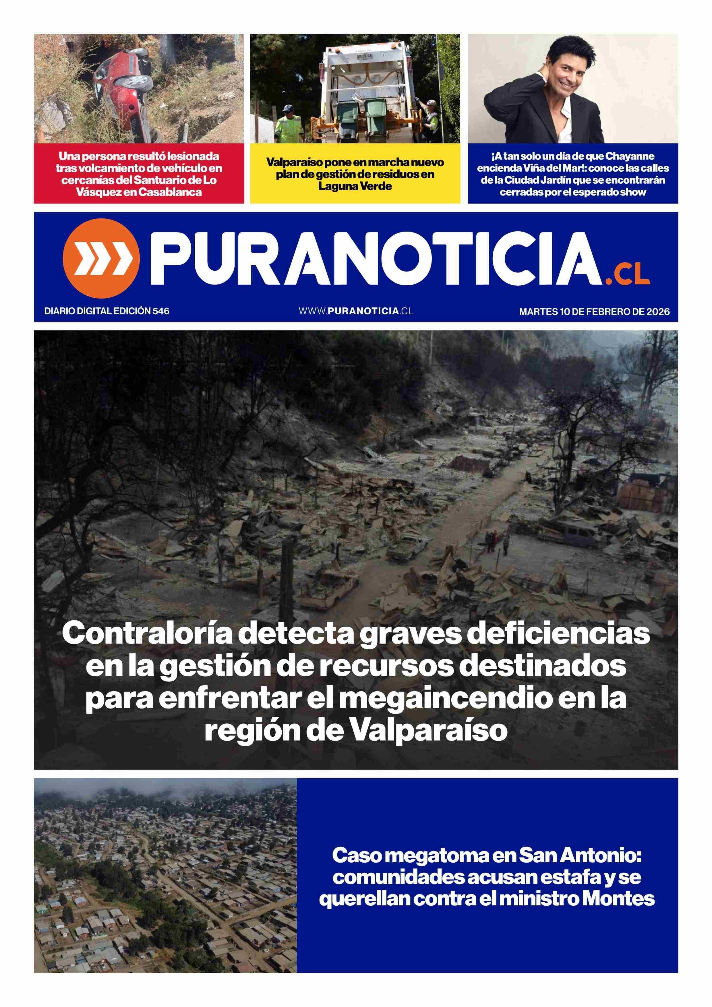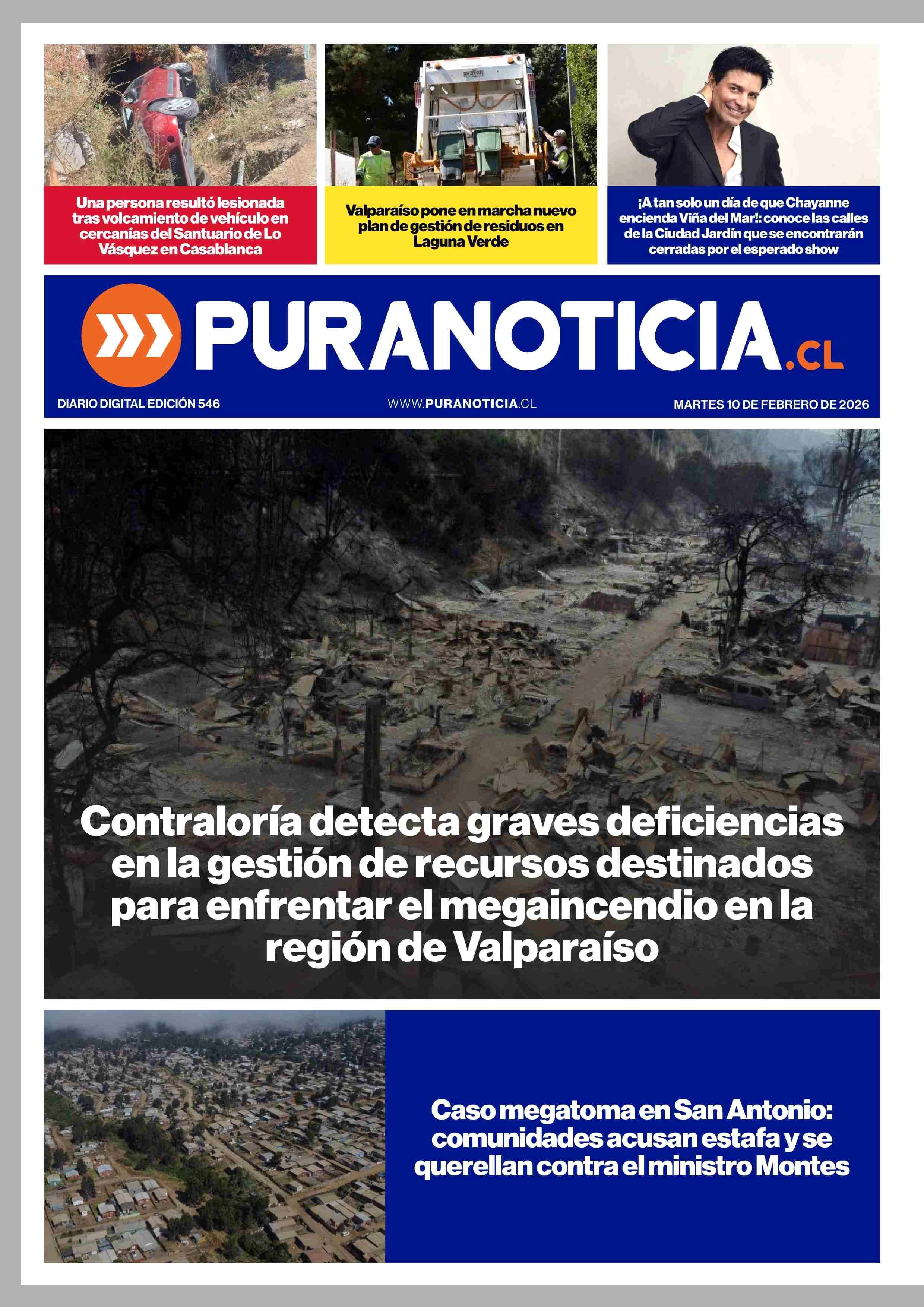 PORTADA PURANOTICIA - CHILE 10-02-2026 Puranoticia.cl |