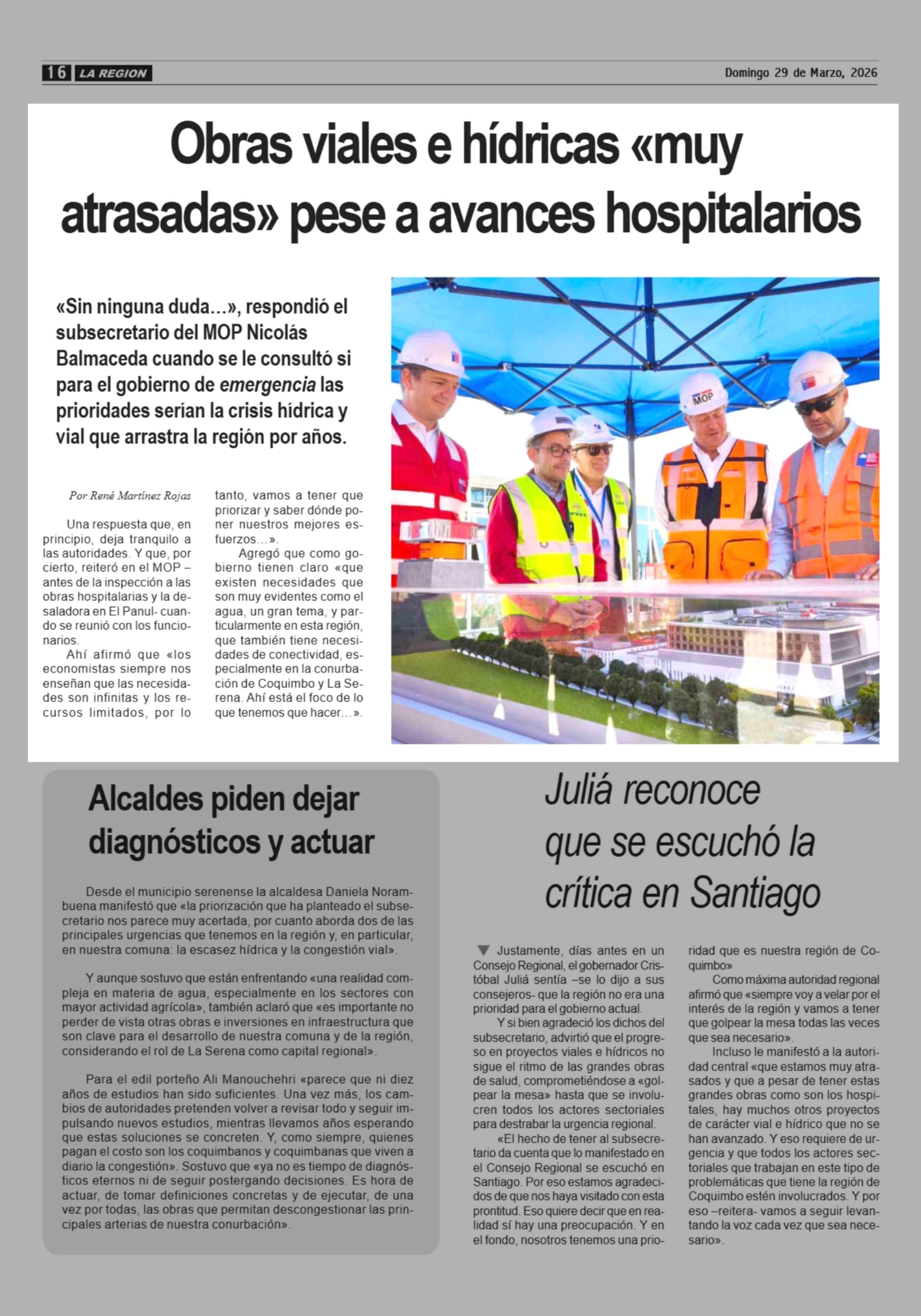 Título: Obras viales e hídricas «muy atrasadas» pese a avances hospitalarios