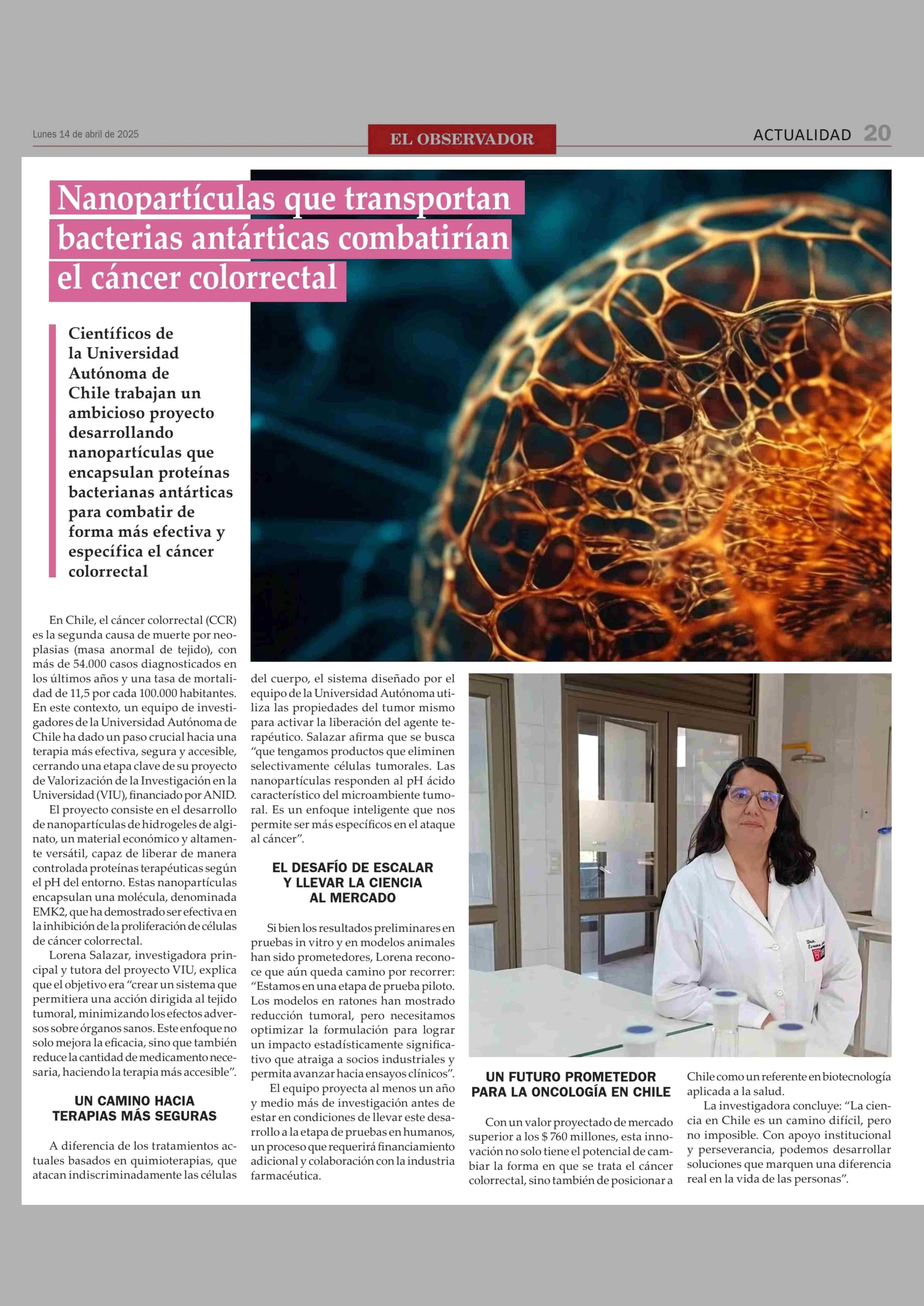 Nanopartículas que.transportan bacterias antárticas combatirían el cáncer colorrectal 14-04-2025 El Observador Vespertino |