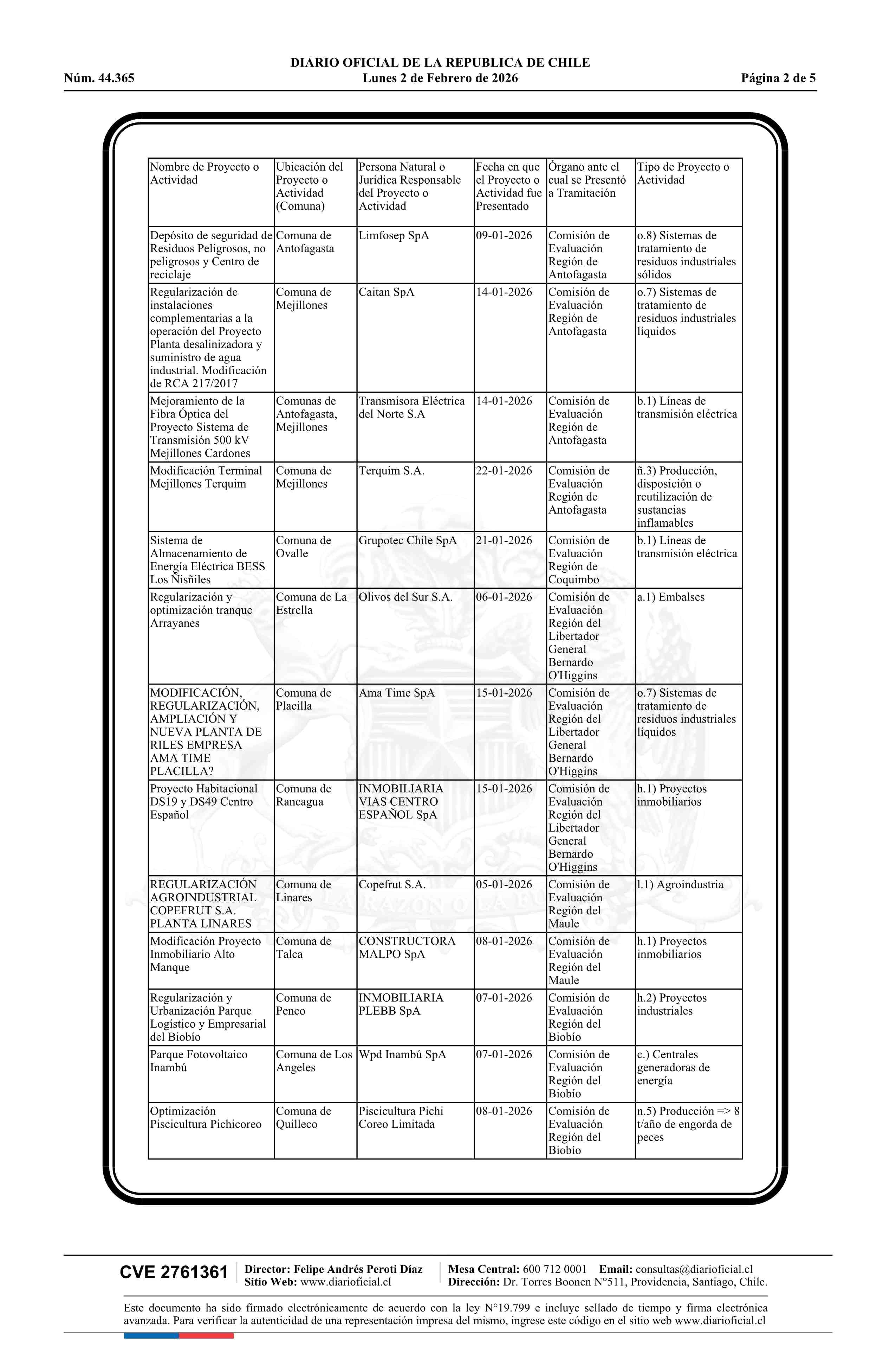 Fecha: 02-02-2026 Sector: Aviso Licitaciones Región: Región Metropolitana de Santiago