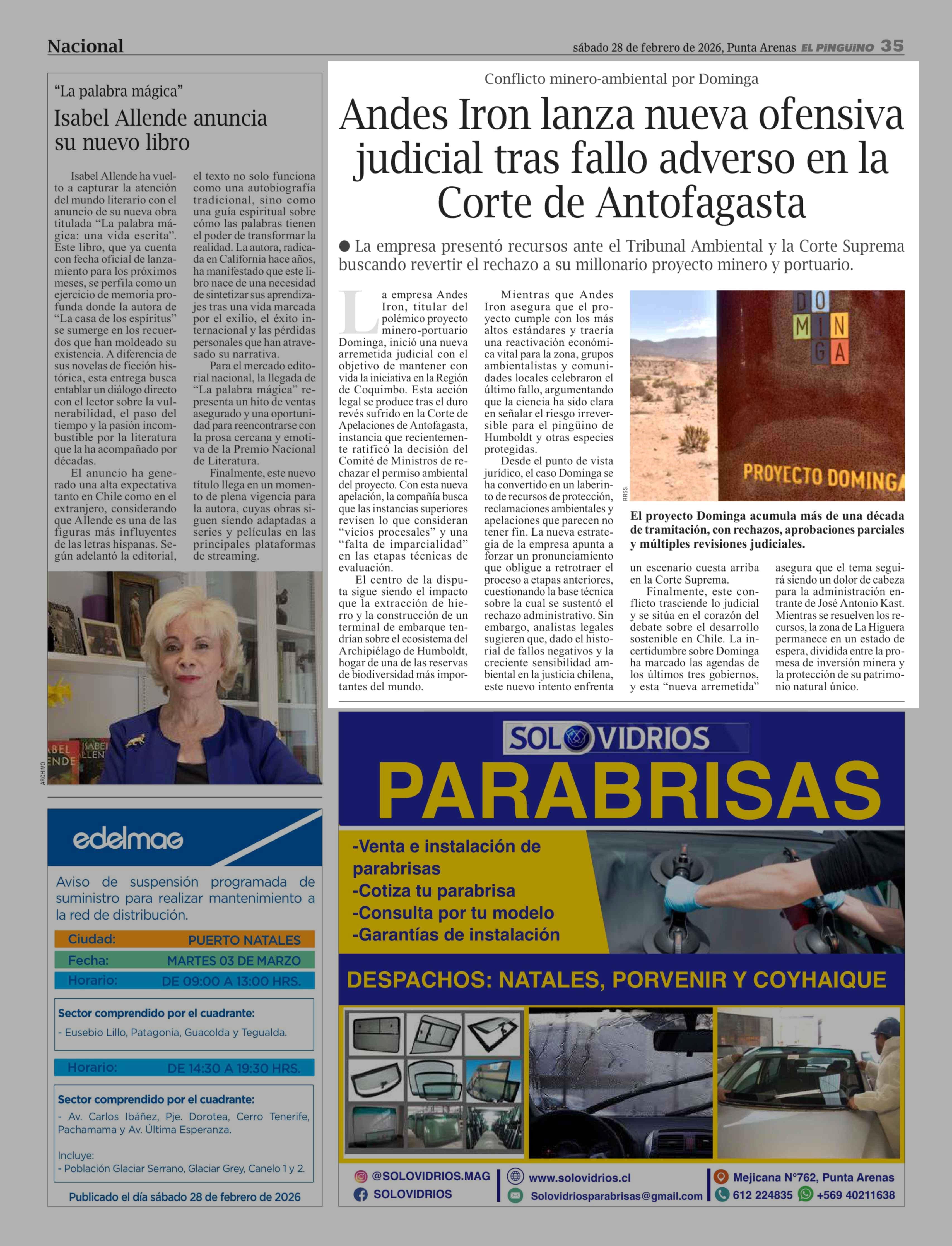 Andes Iron lanza nueva ofensiva judicial tras fallo adverso en la Corte de Antofagasta 28-02-2026 El Pingüino |