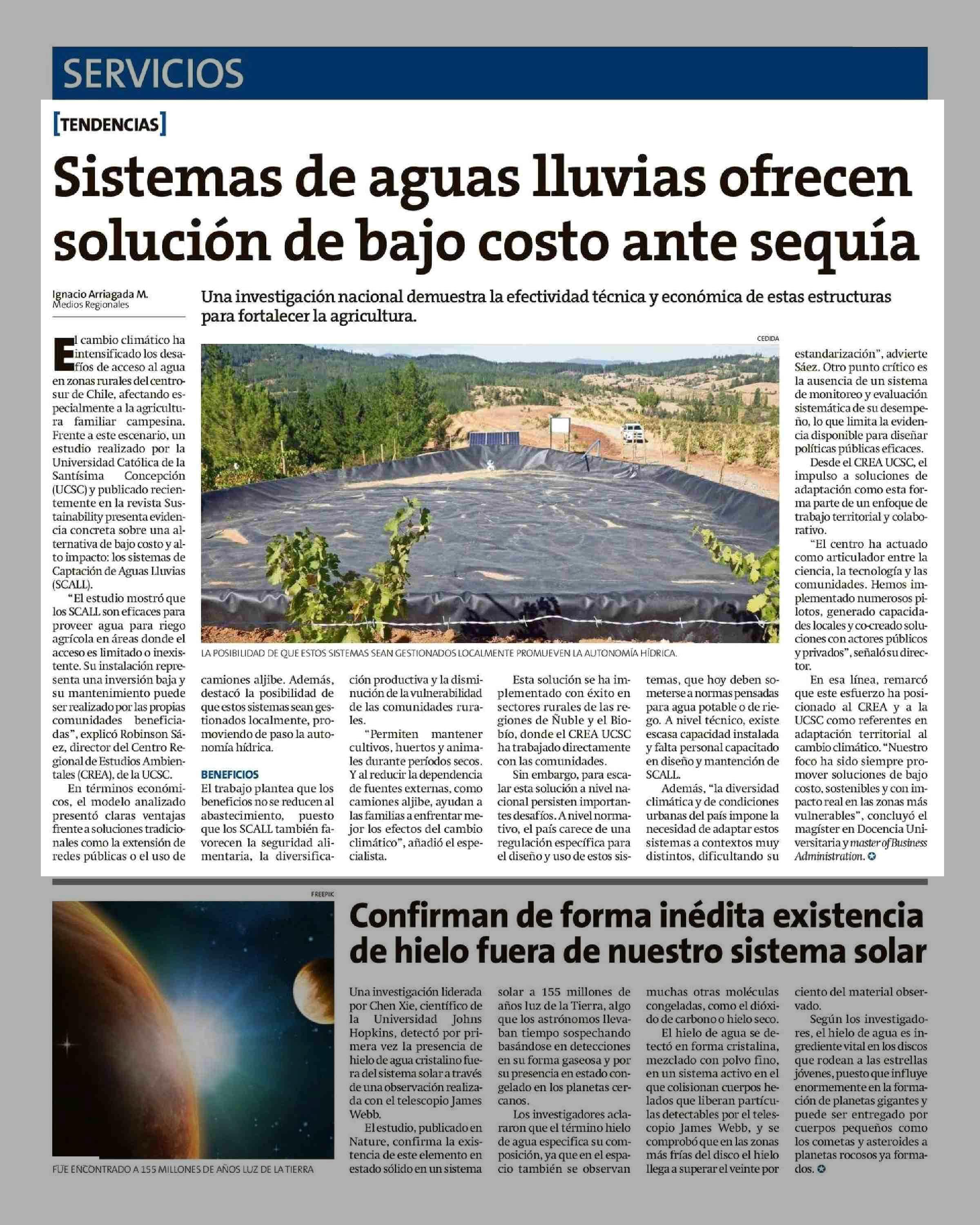 Sistemas de aguas lluvias ofrecen solución de bajo costo ante sequía 20-05-2025 La Estrella de Chiloé |