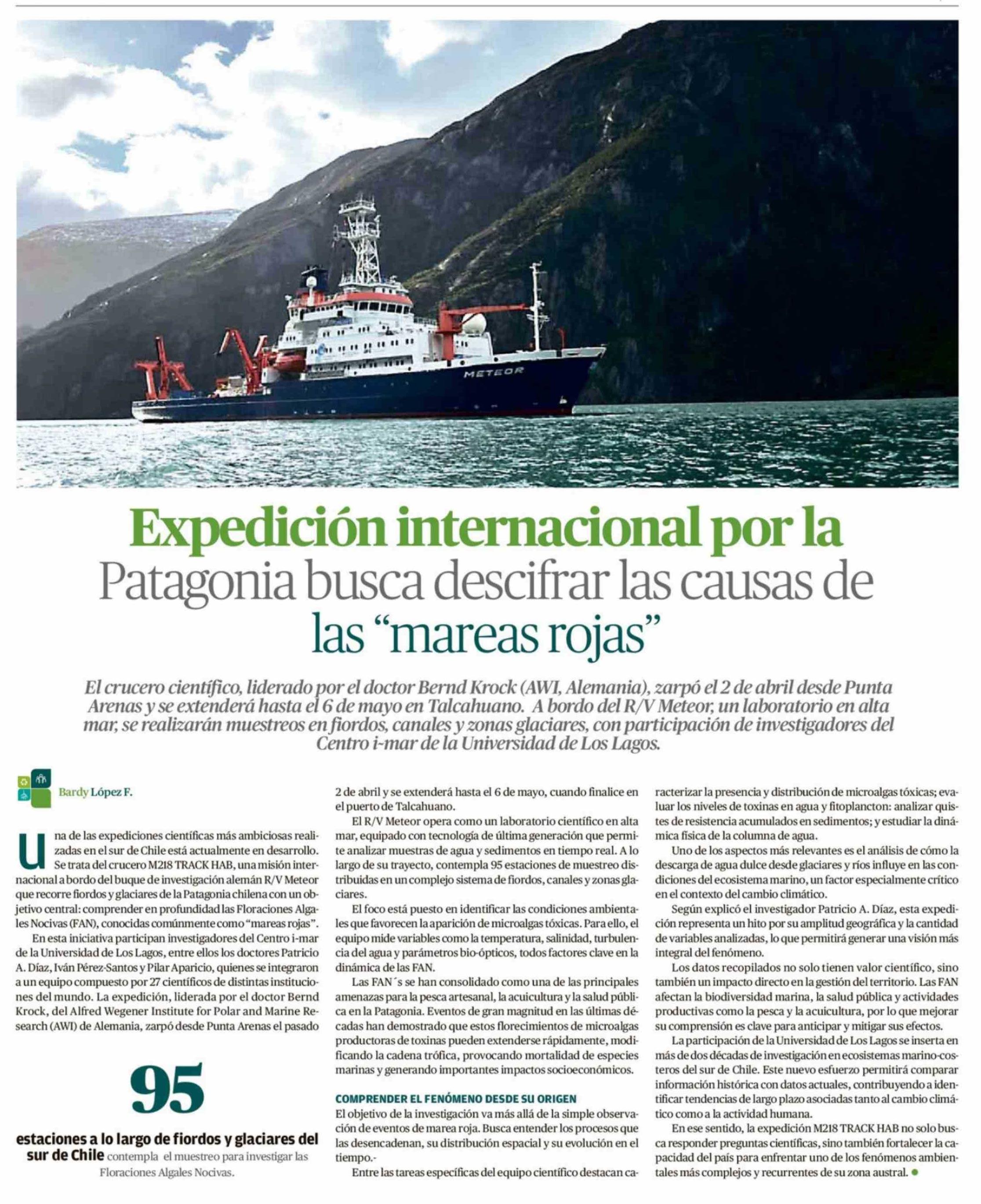 Expedición internacional por la Patagonia busca descifrar las causas de las "mareas rojas" 19-04-2026 El Austral de la Araucanía |