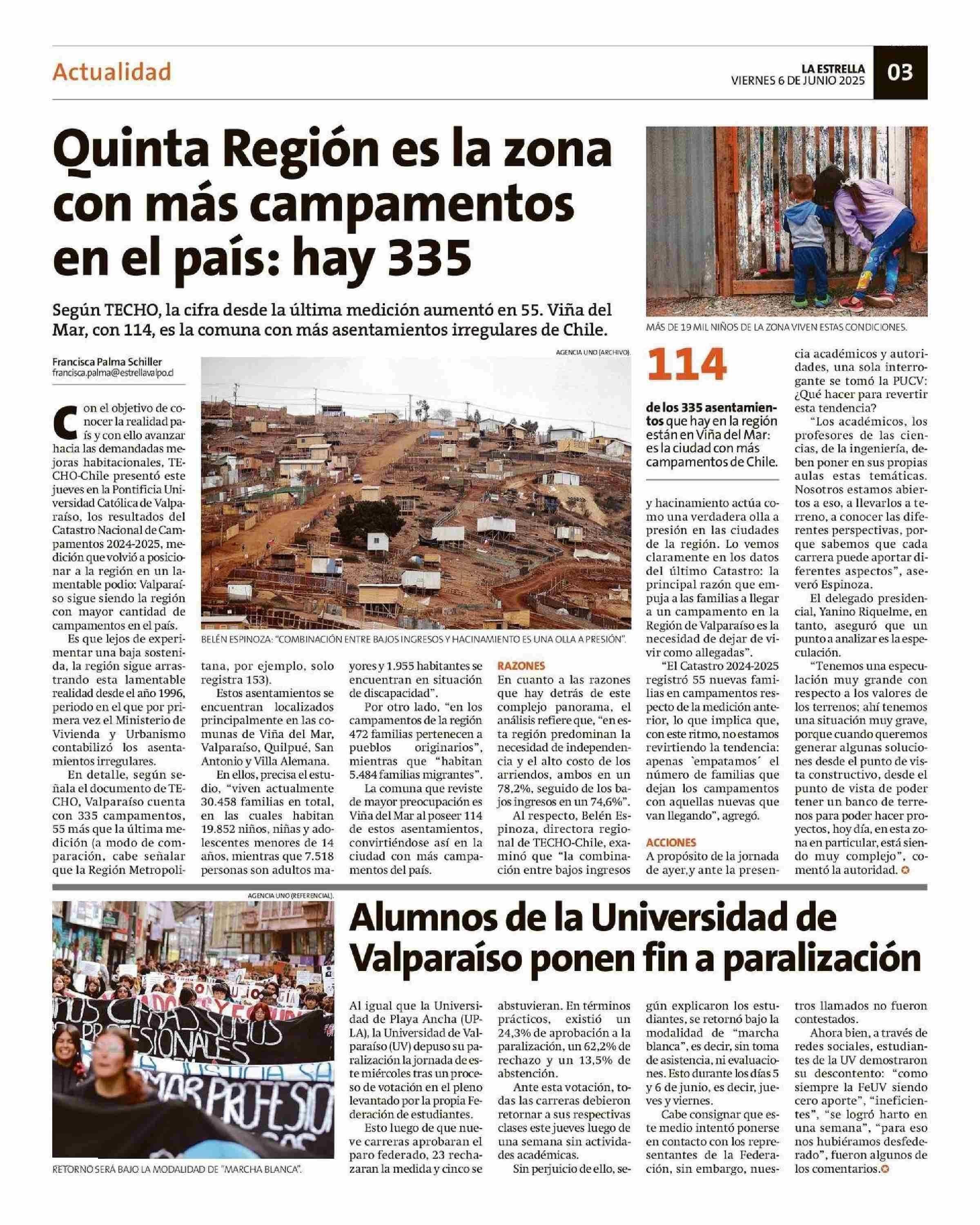 Quinta Región es la zona con más campamentos en el país: hay 335 06-06-2025 La Estrella de Valparaíso |