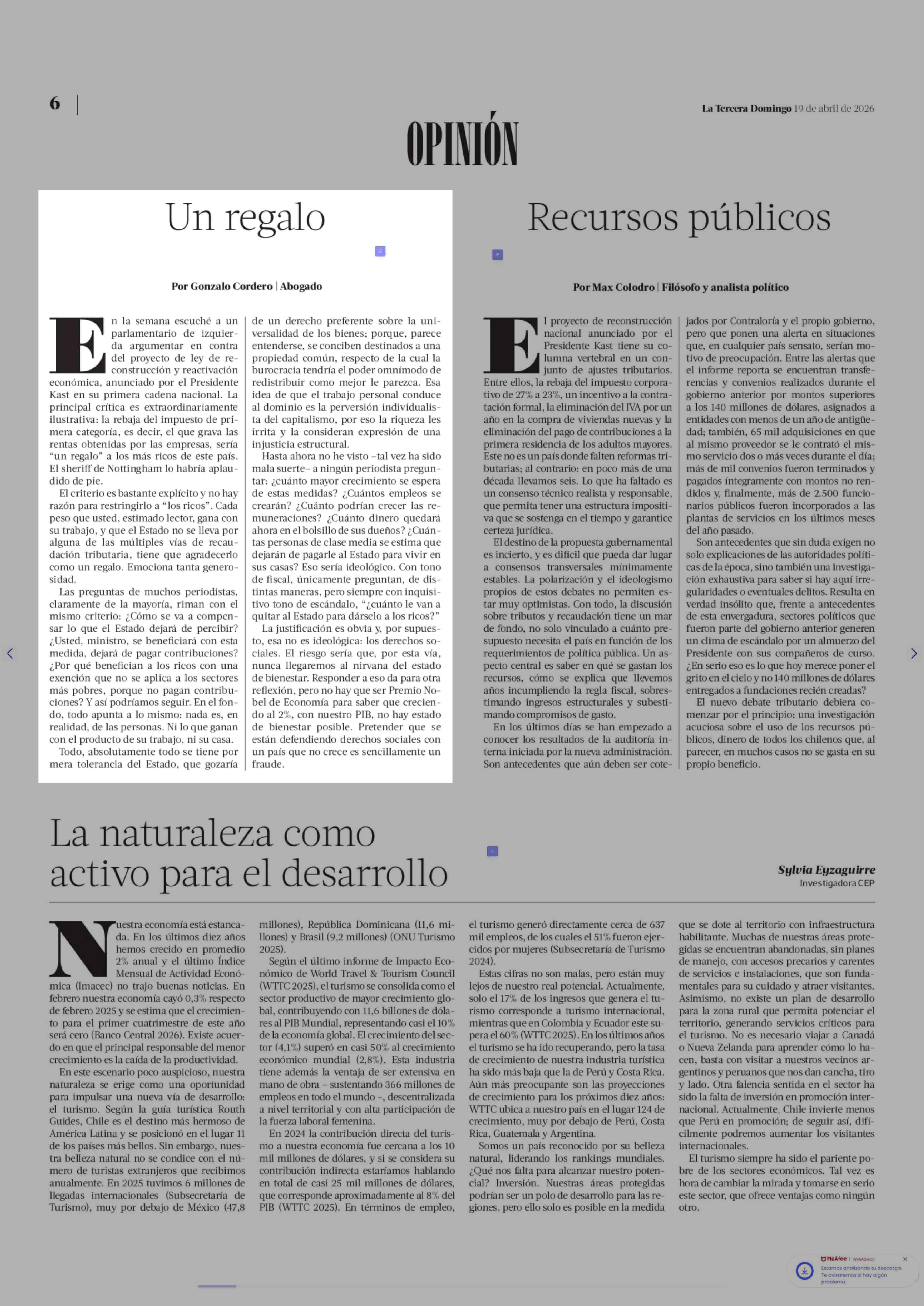Columnas de Opinión: Un regalo 19-04-2026 La Tercera |