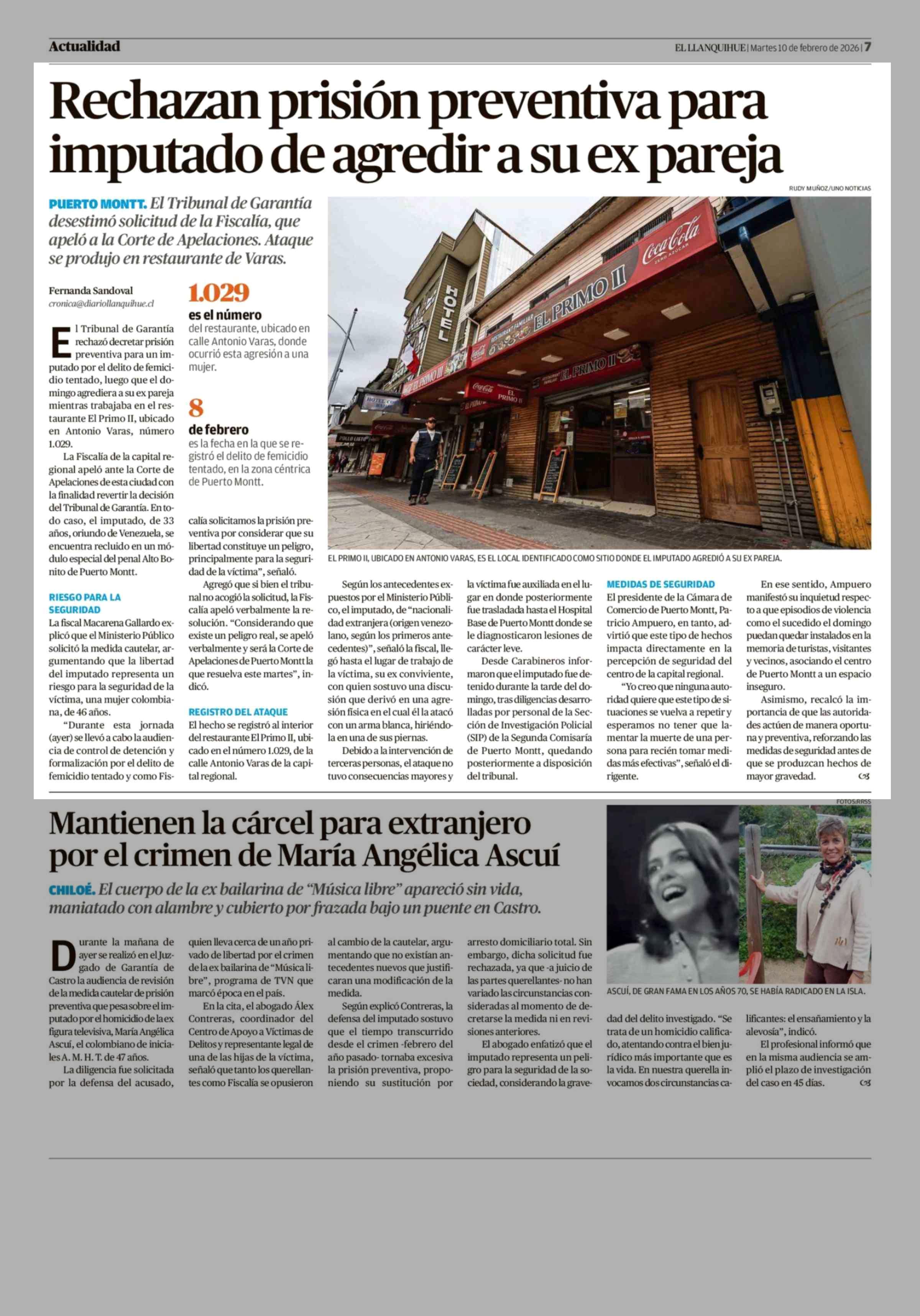 Rechazan prisión preventiva para imputado de agredir a su ex pareja 10-02-2026 El Llanquihue |