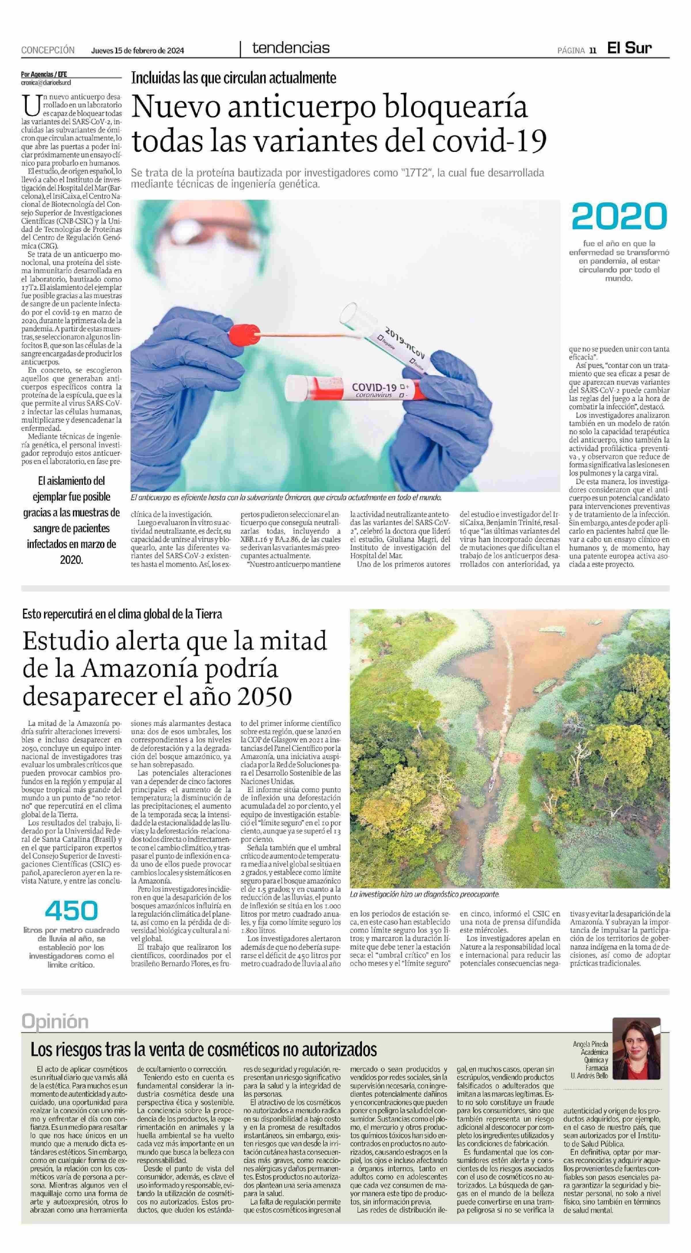 Estudio alerta que la mitad de la Amazonía podría desaparecer el año 2050 15-02-2024 El Sur |
