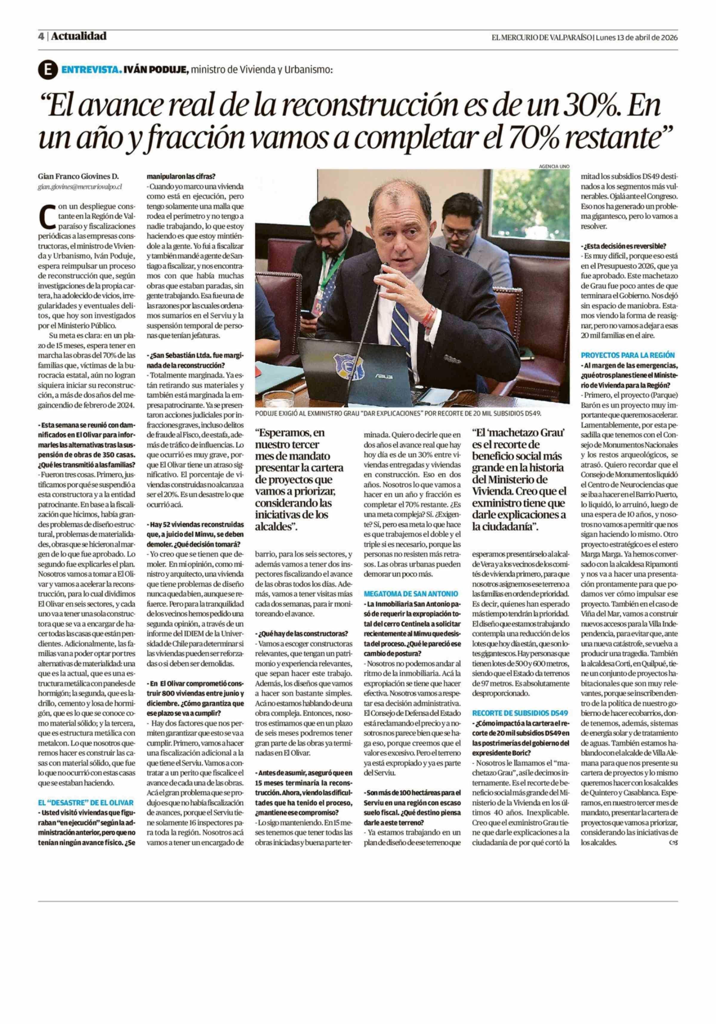 Título: "El avance real de la reconstrucción es de un 30%. En un año y fracción vamos a completar el 70% restante"