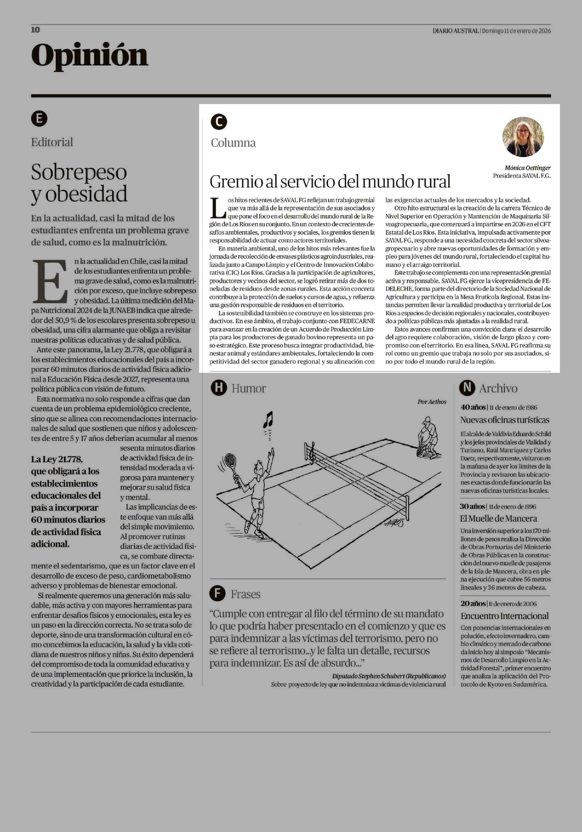 Columnas de Opinión: Gremio al servicio del mundo rural 11-01-2026 Diario Austral Región de Los Ríos |