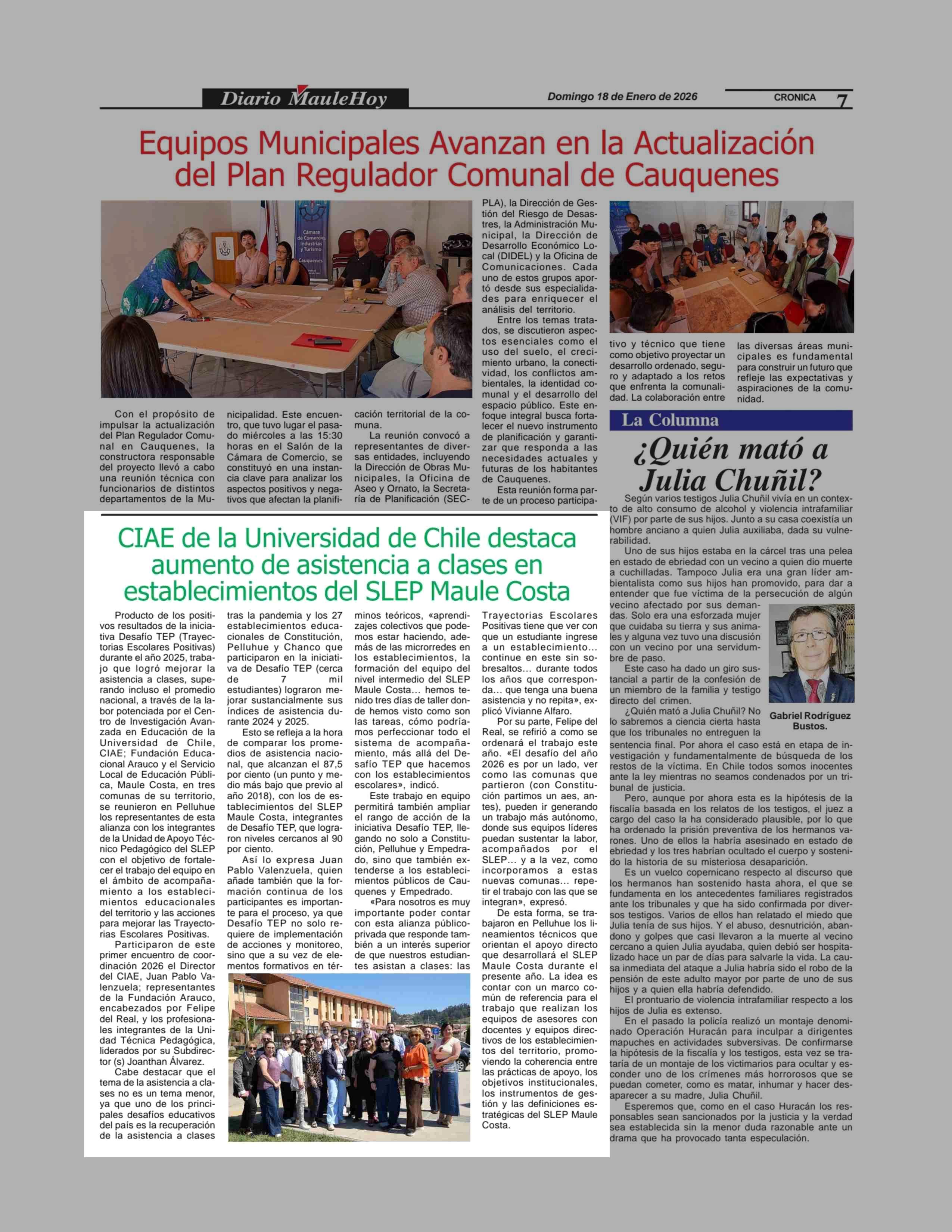 CIAE de la Universidad de Chile destaca aumento de asistencia a clases en establecimientos del SLEP Maule Costa 18-01-2026 Maule Hoy |
