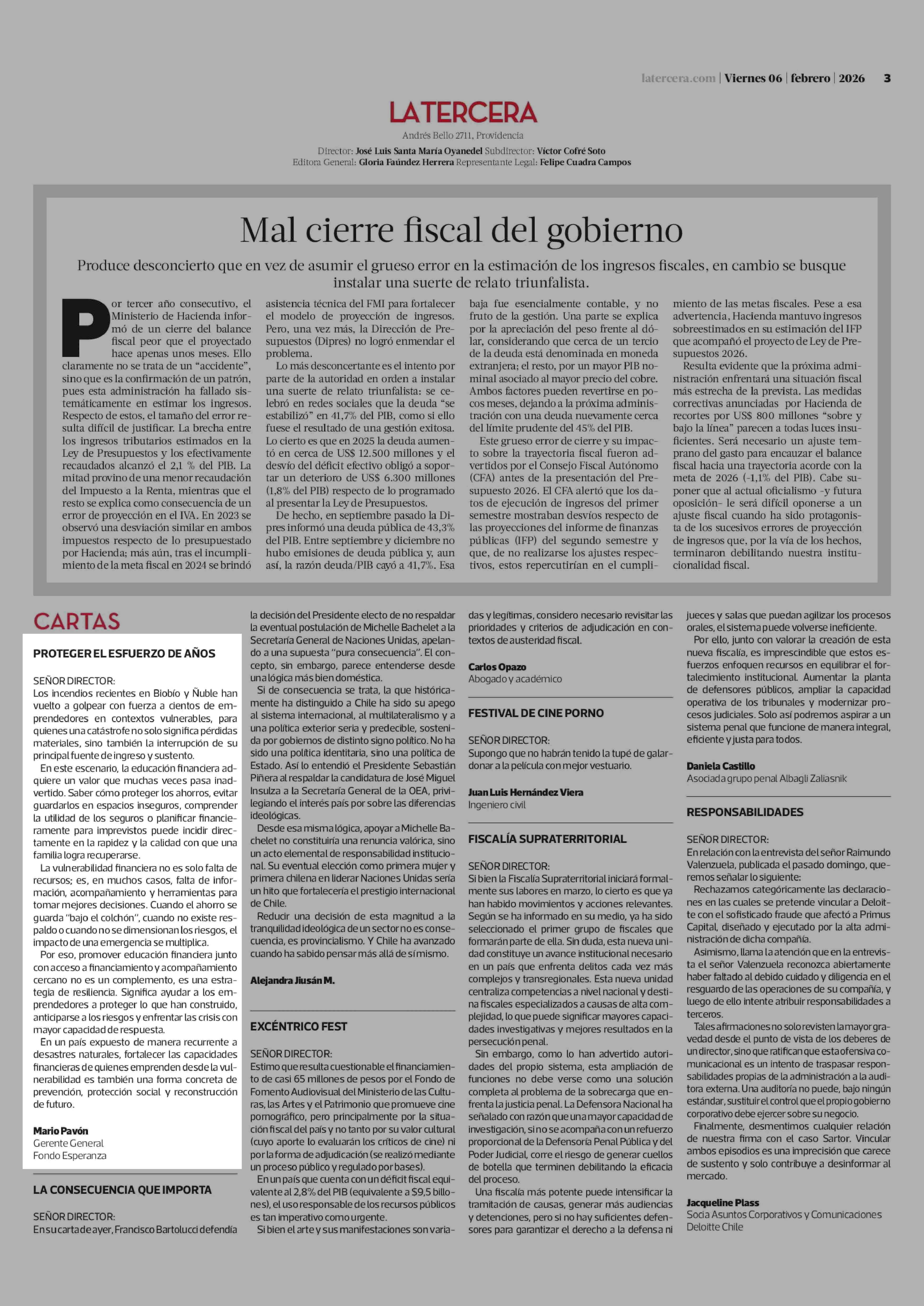 CARTAS: PROTEGEREL ESFUERZO DE AÑOS 06-02-2026 La Tercera |