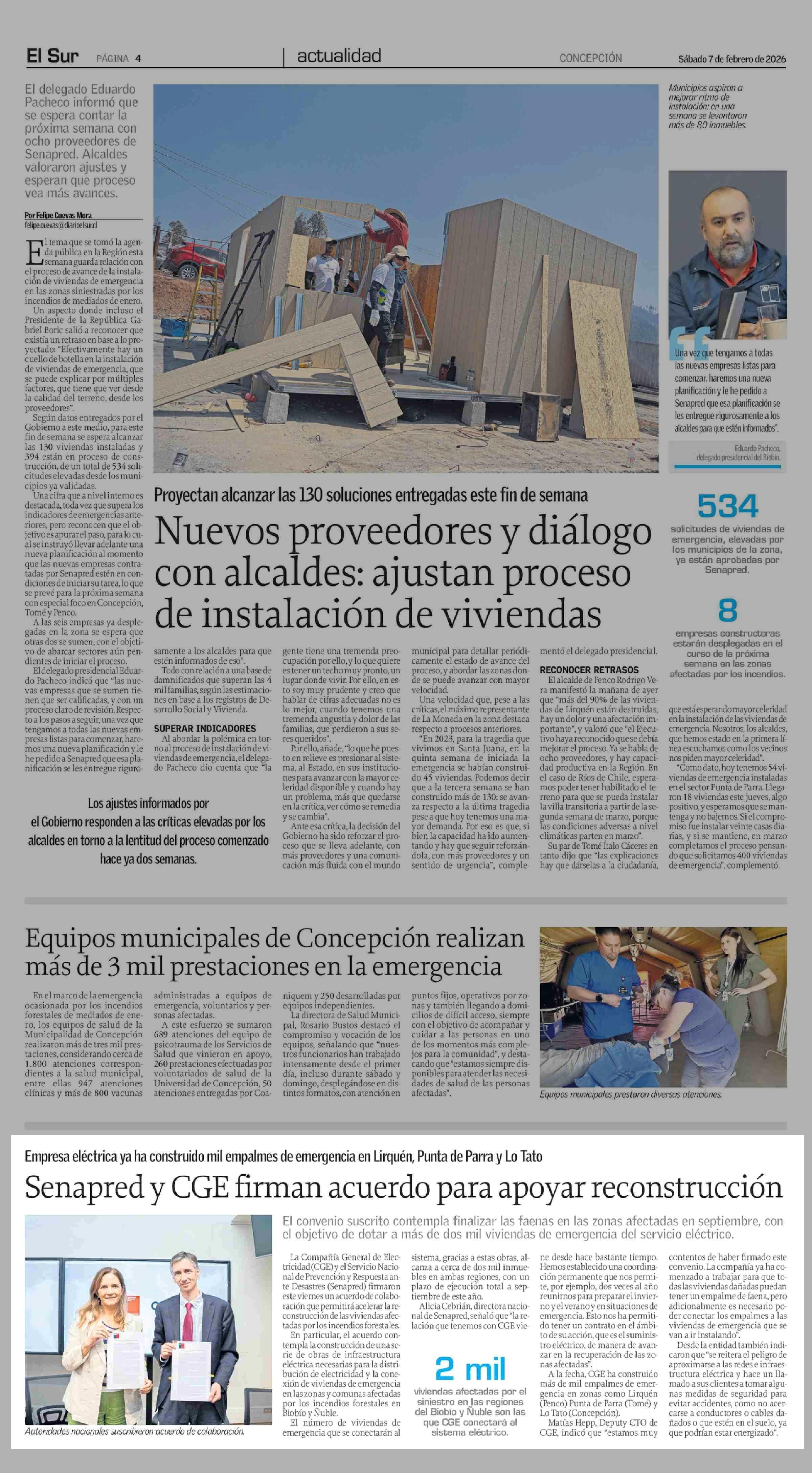 Senapred y CGE firman acuerdo para apoyar reconstrucción 07-02-2026 El Sur |