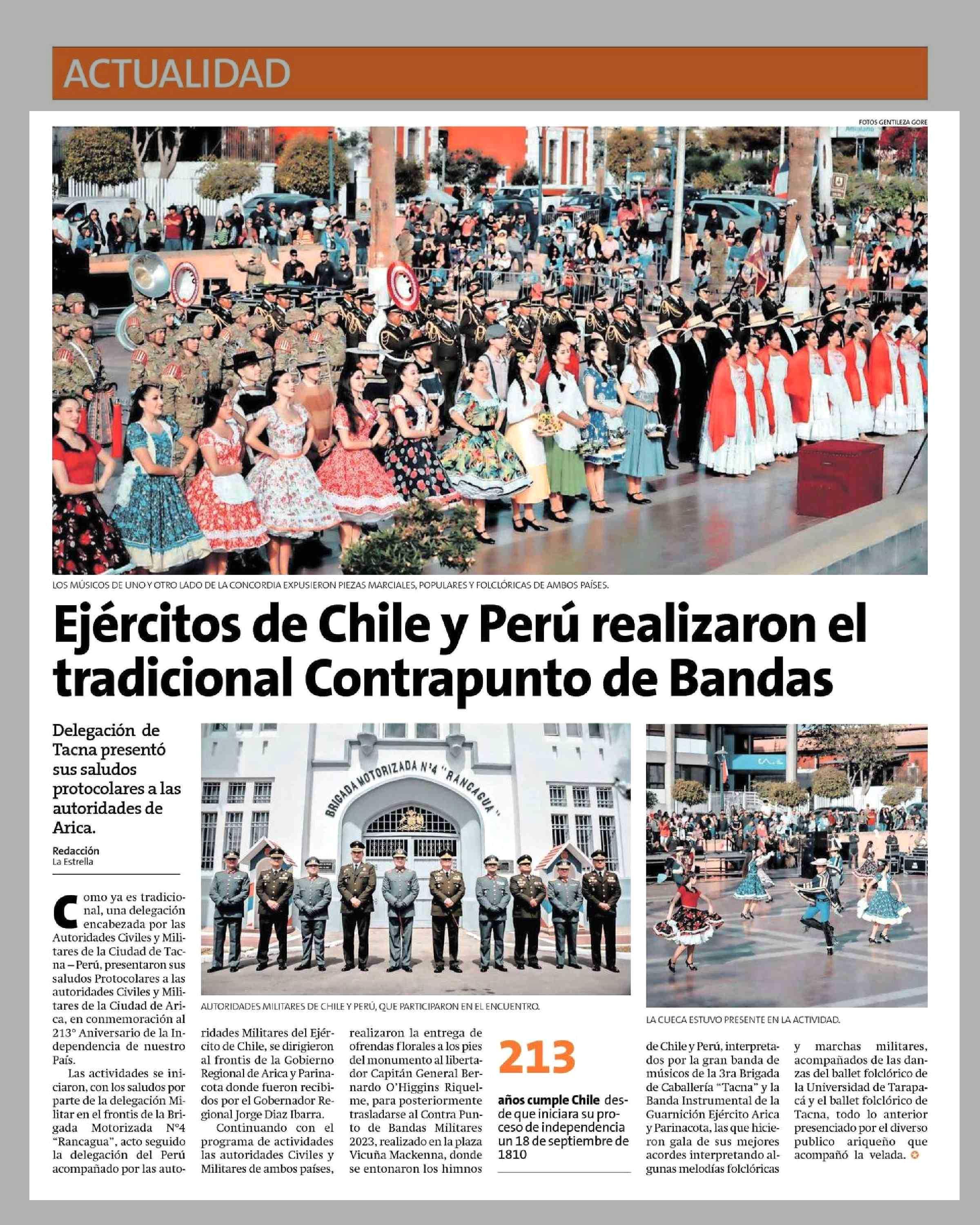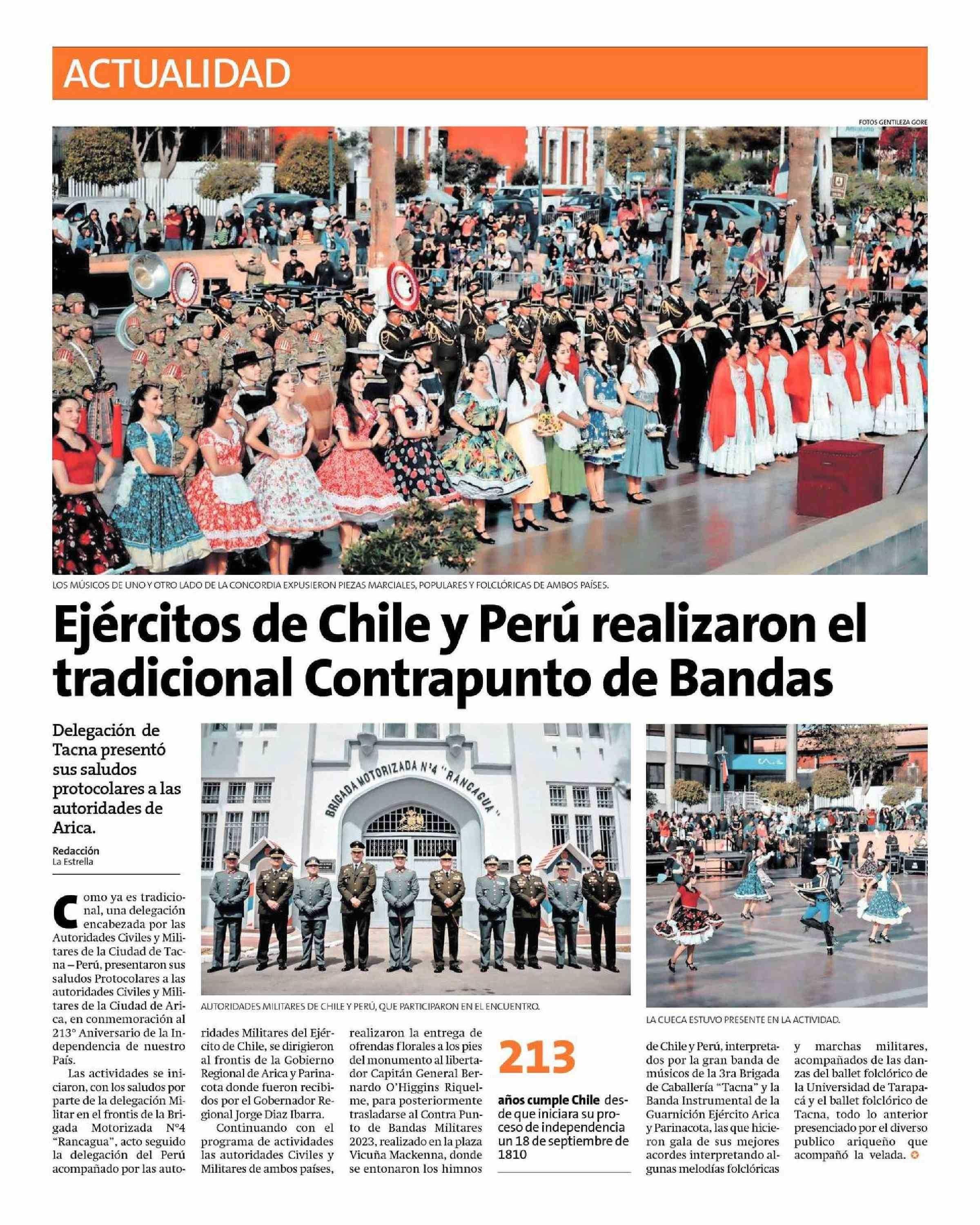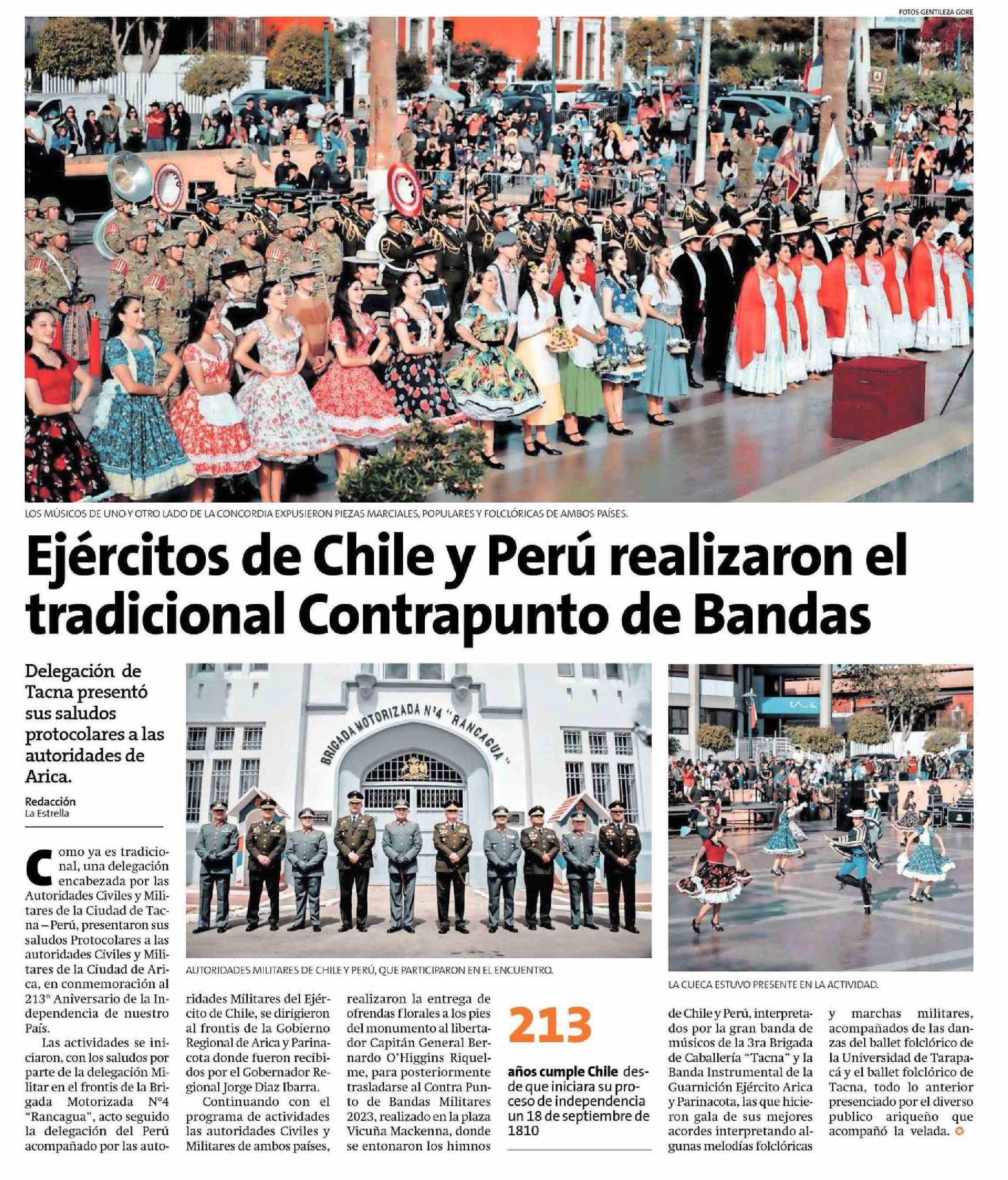 Ejércitos de Chile y Perú realizaron el tradicional Contrapunto de Bandas 14-09-2023 La Estrella de Arica |