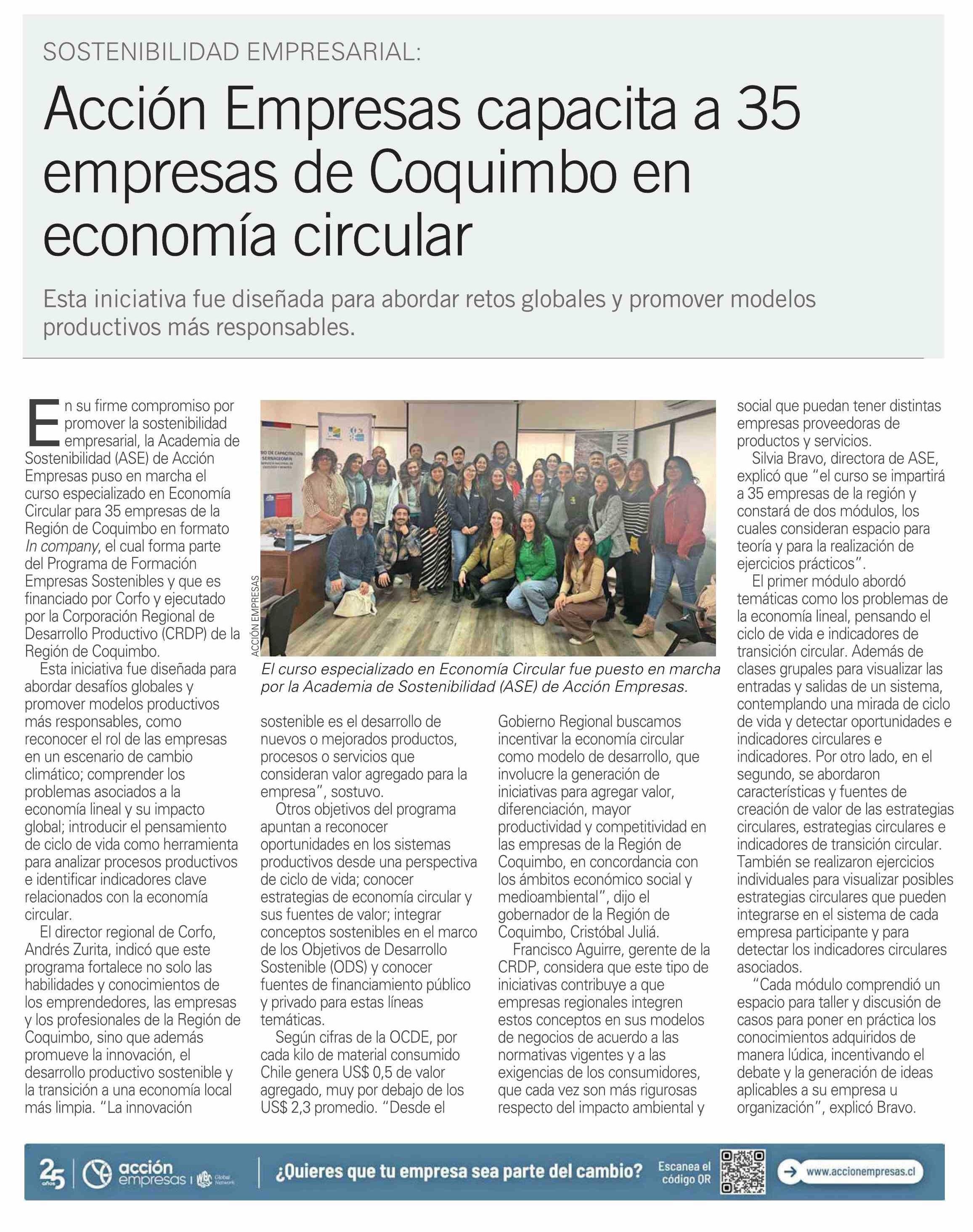 Acción Empresas capacita a 35 empresas de Coquimbo en economía circular 28-05-2025 El Mercurio |