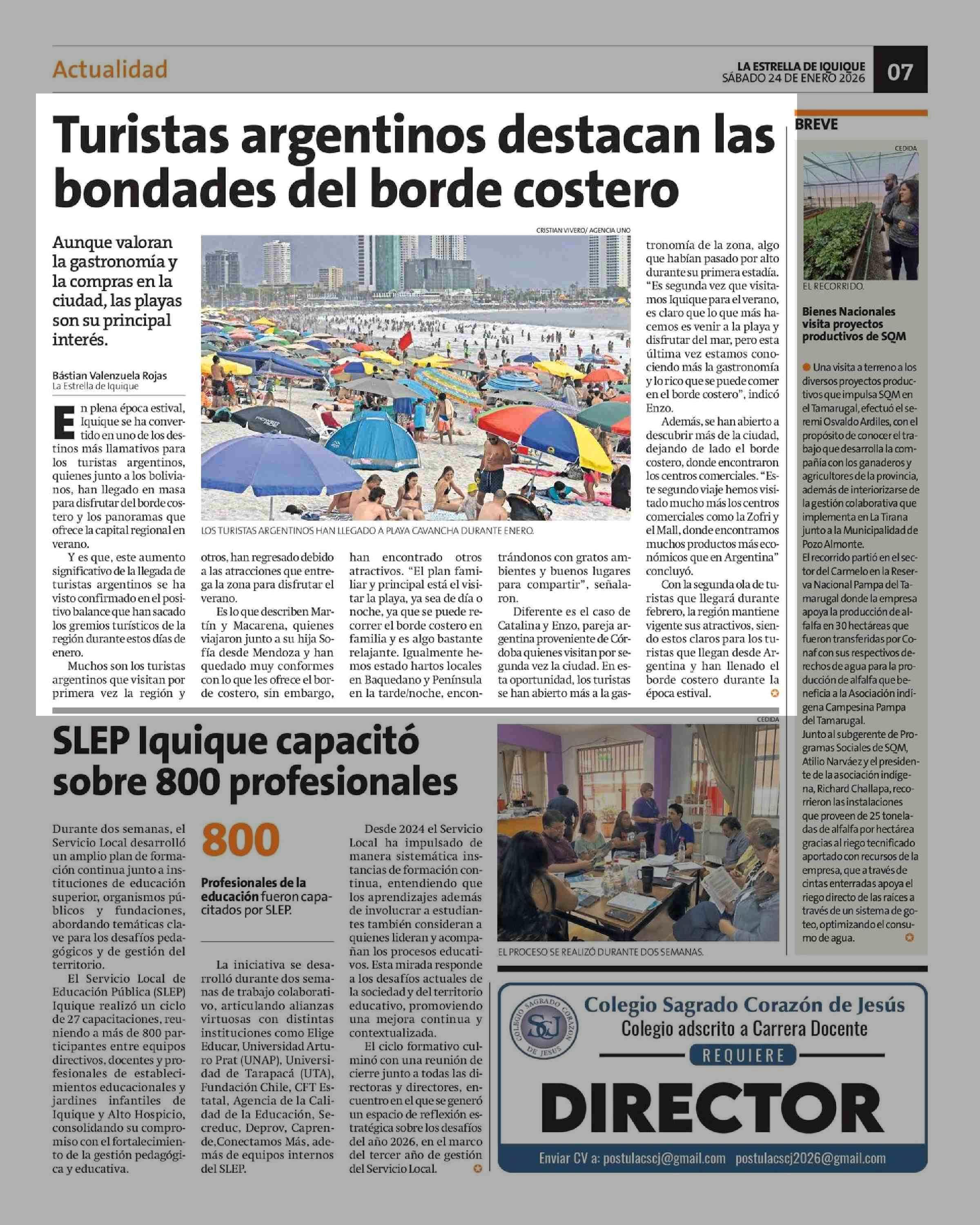 Turistas argentinos destacan las bondades del borde costero 24-01-2026 La Estrella de Iquique |