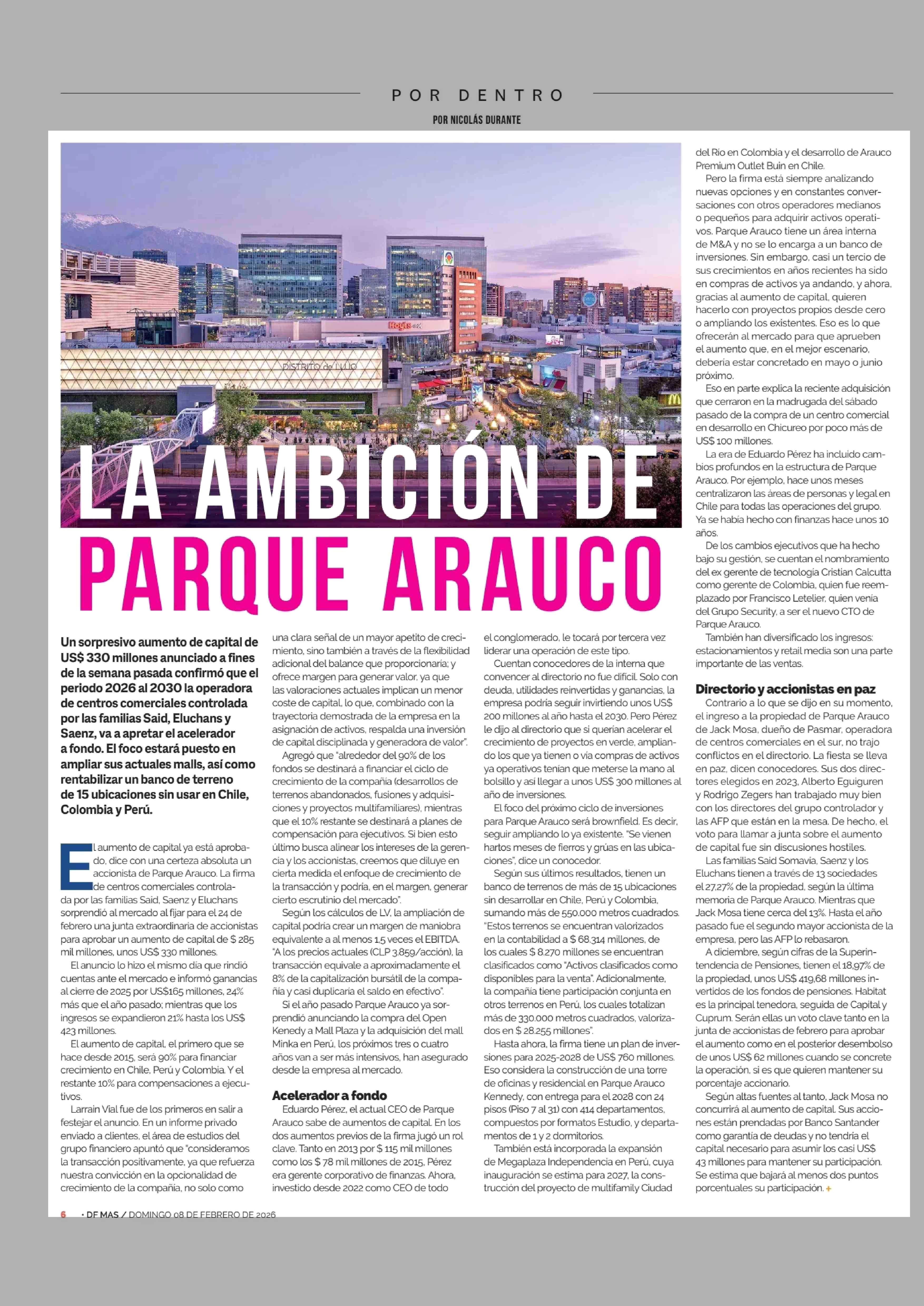 LA AMBICION DE PARQUE ARAUCO 08-02-2026 Diario Financiero |