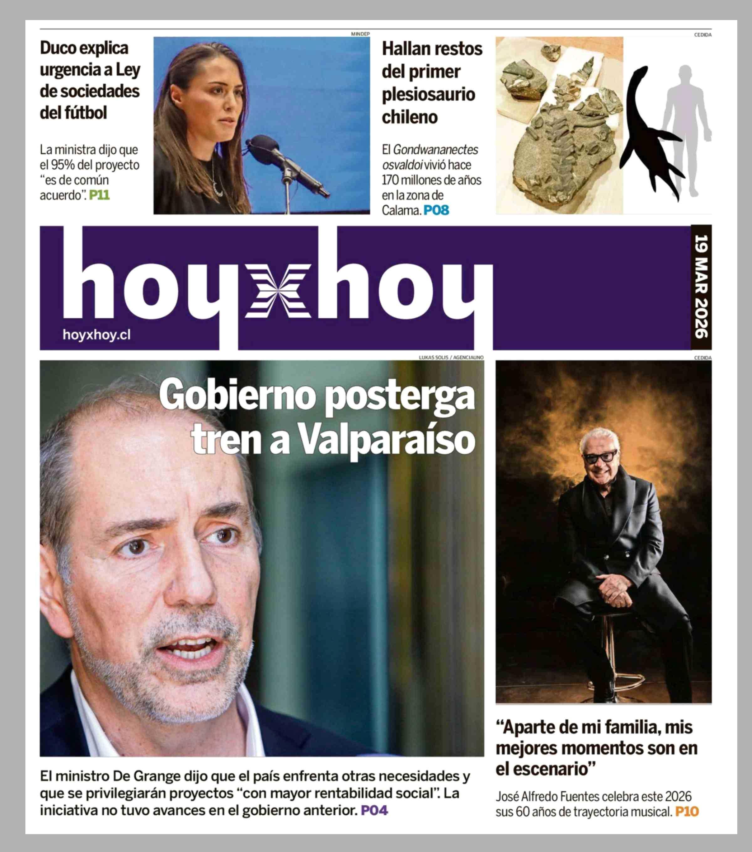 PORTADA HOYXHOY - CHILE 19-03-2026 Hoy x Hoy |