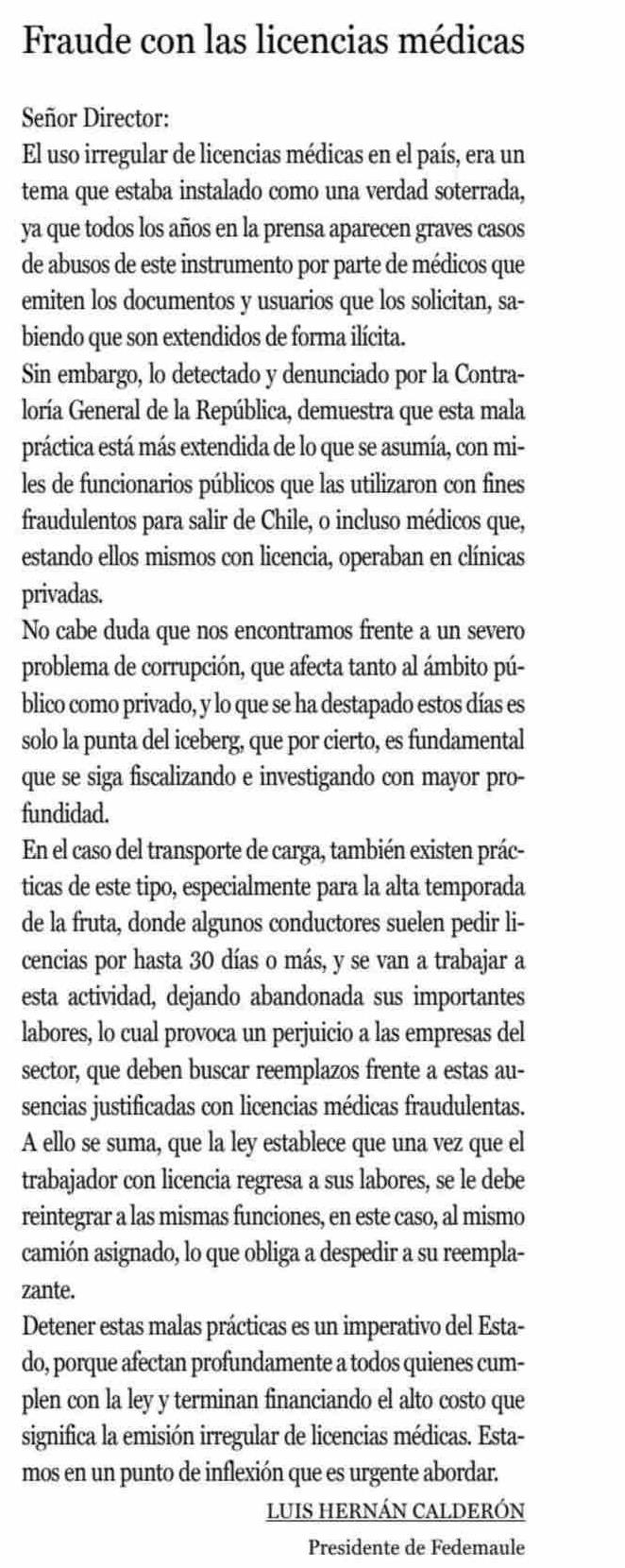 CARTAS: Fraude con las licencias médicas 03-06-2025 La Prensa de Curicó |
