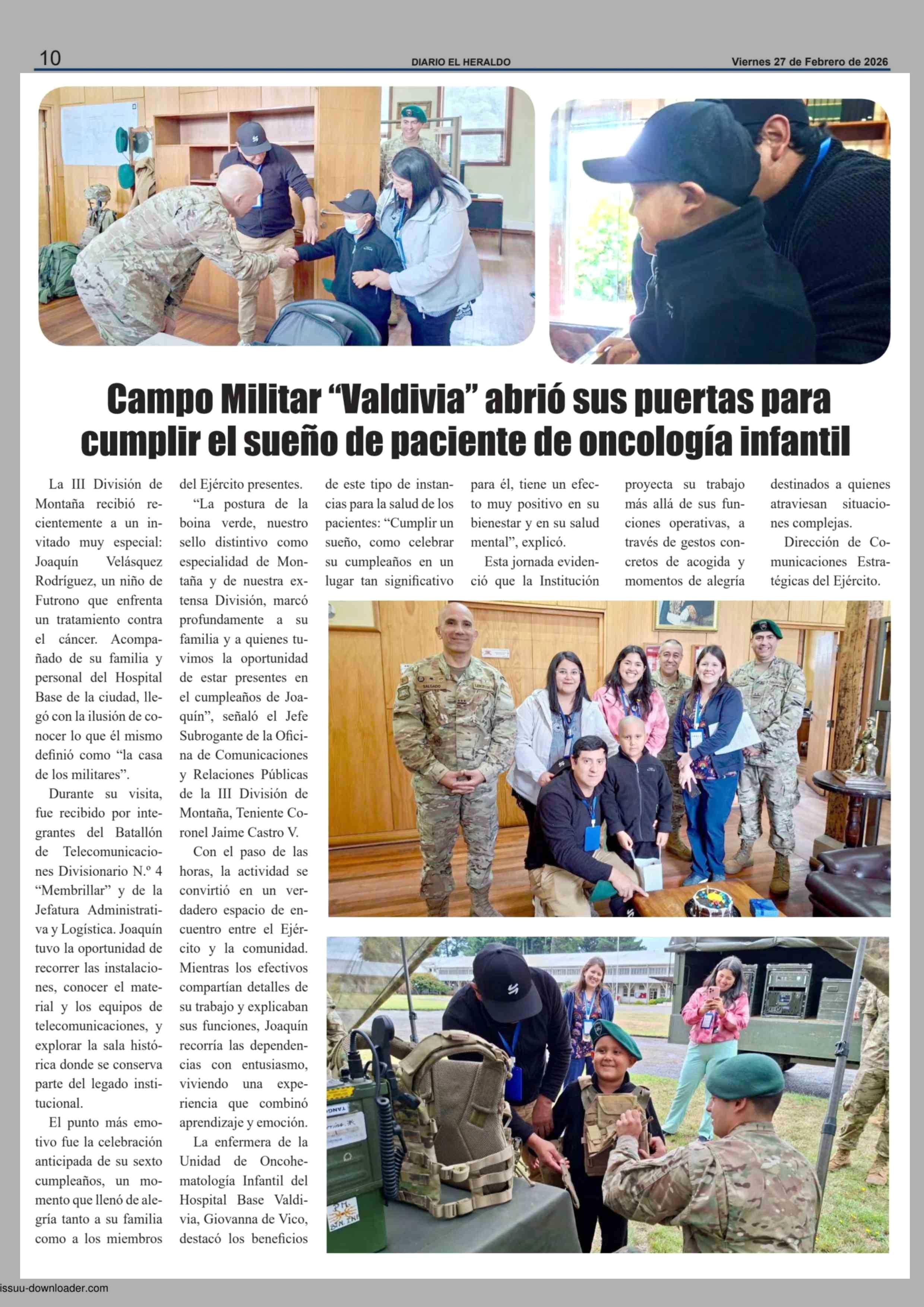 Título: Campo Militar "Valdivia" abrió sus puertas para cumplir el sueño de paciente de oncología infantil