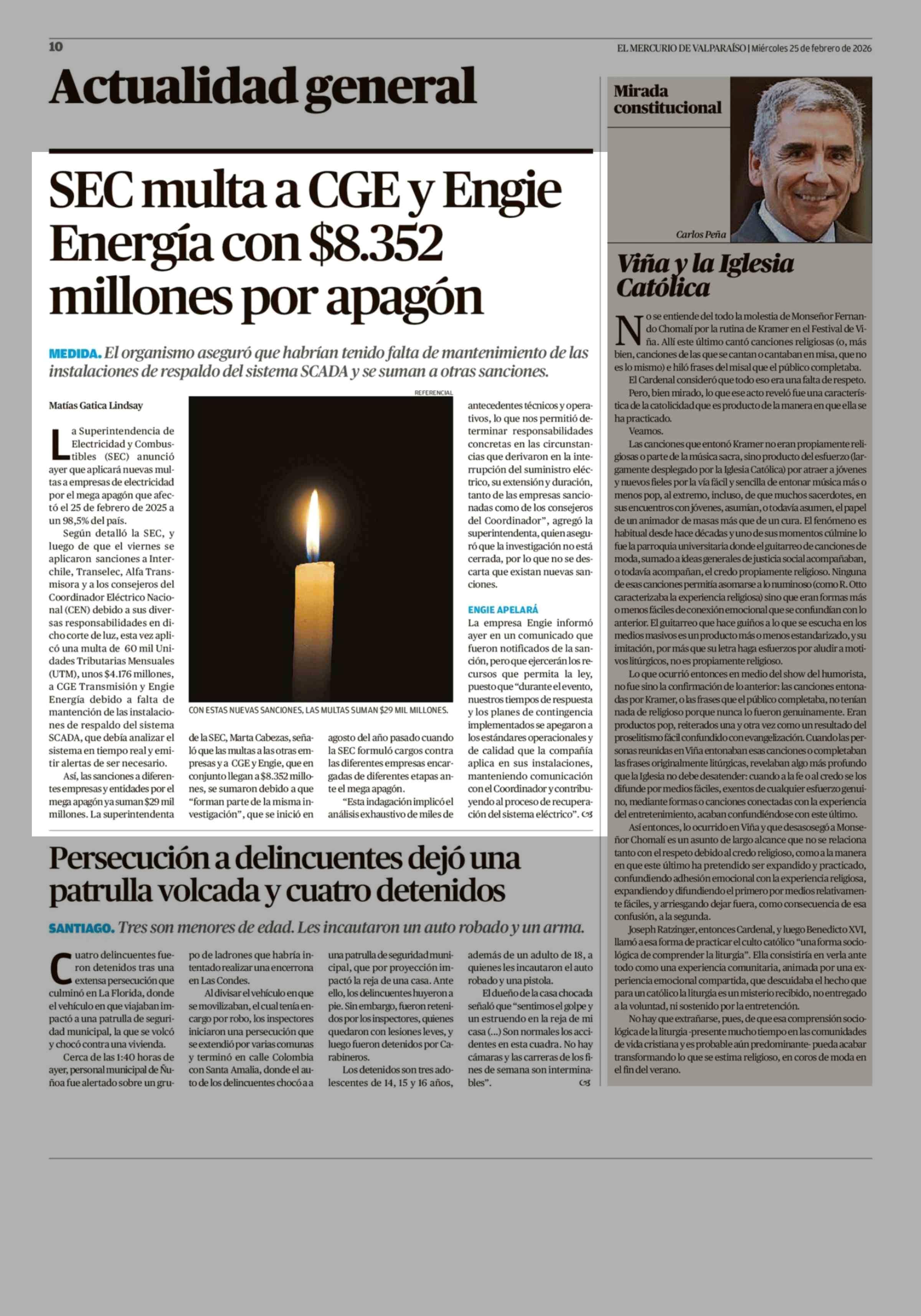 Título: SEC multa a CGE y Engie Energía con $8.352 millones por apagón
