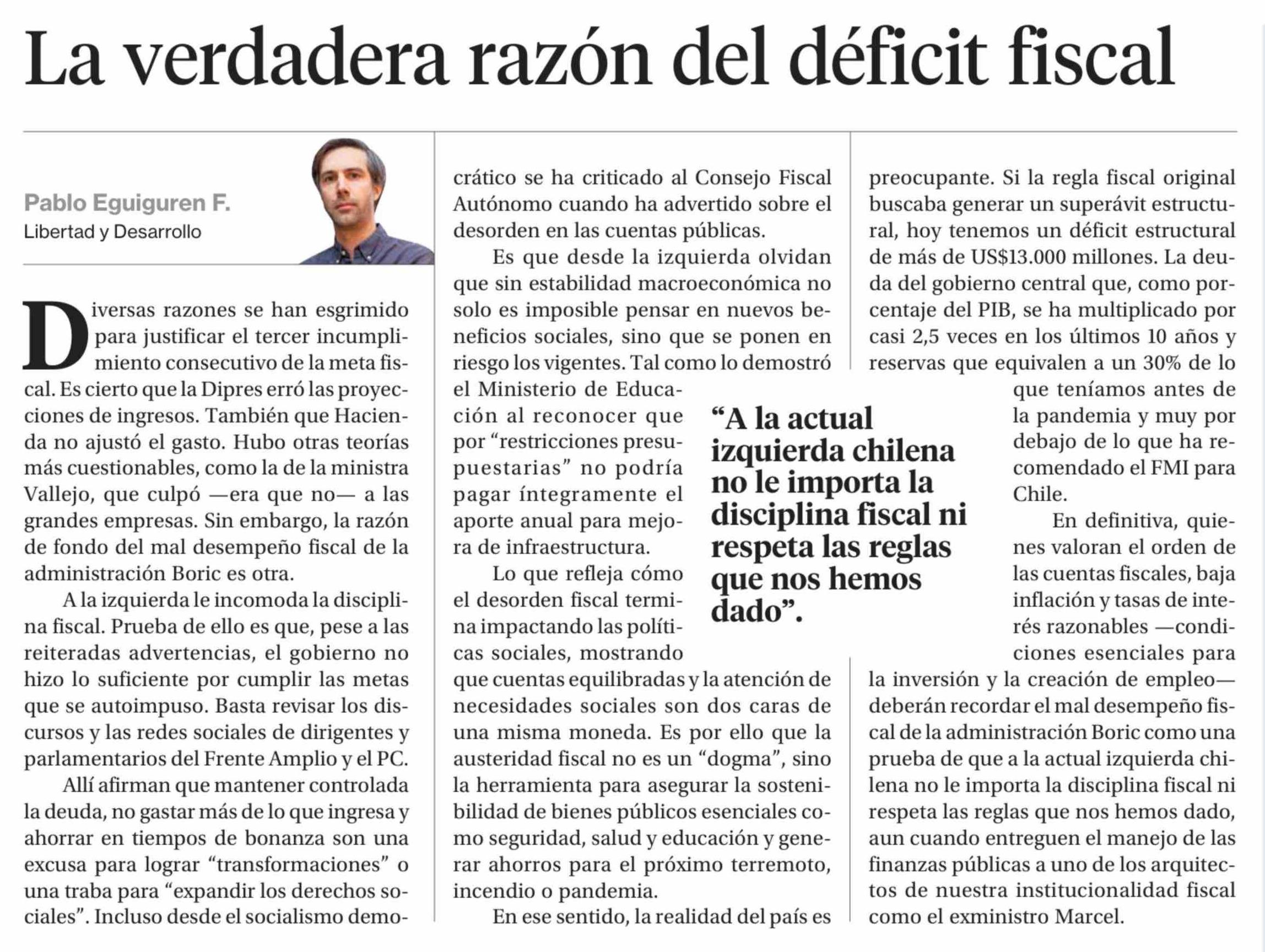 Columnas de Opinión: La verdadera razón del déficit fiscal 27-02-2026 La Segunda |