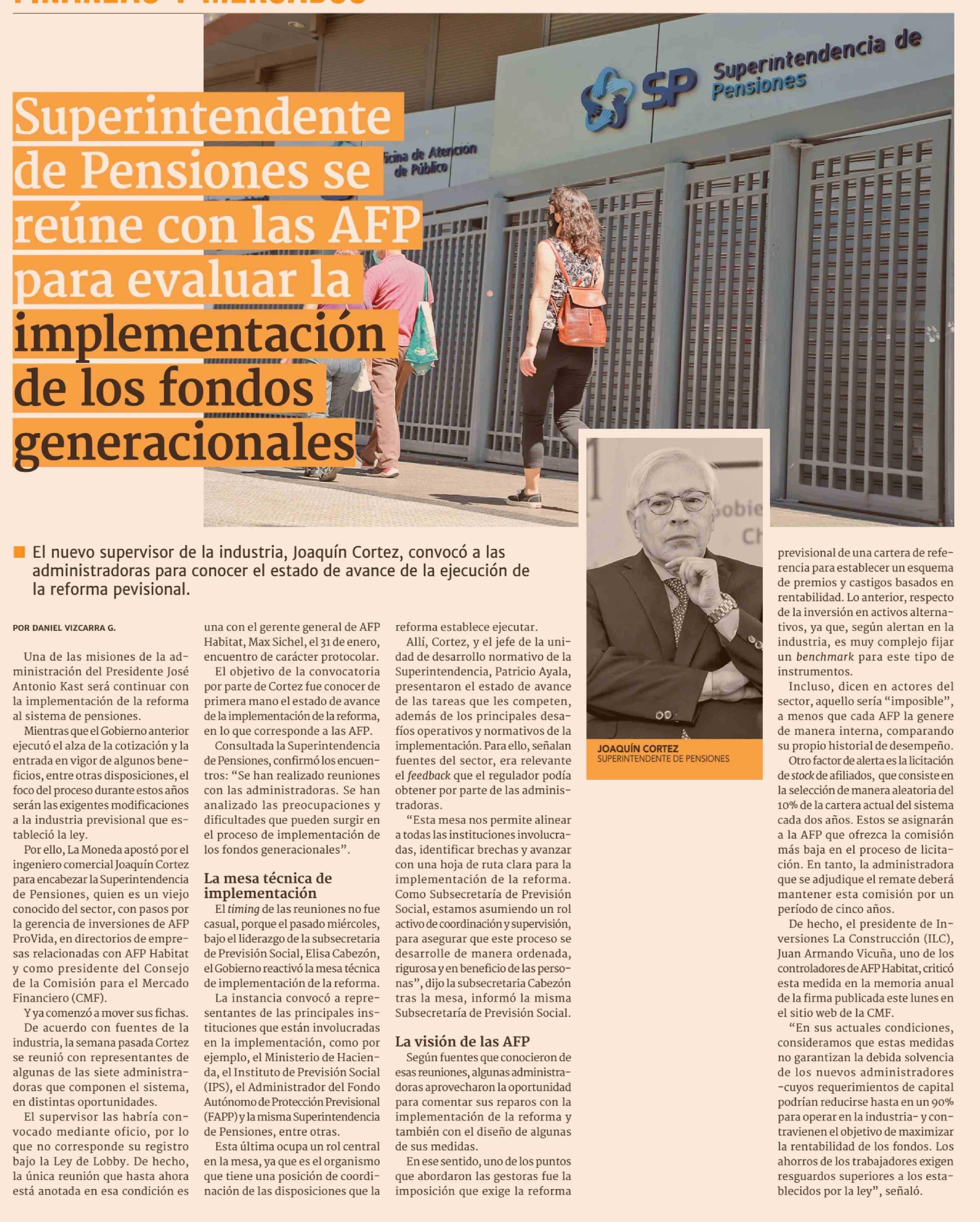 Superintendente de Pensiones se reúne con las AFP para evaluar la implementación de los fondos generacionales 07-04-2026 Diario Financiero |