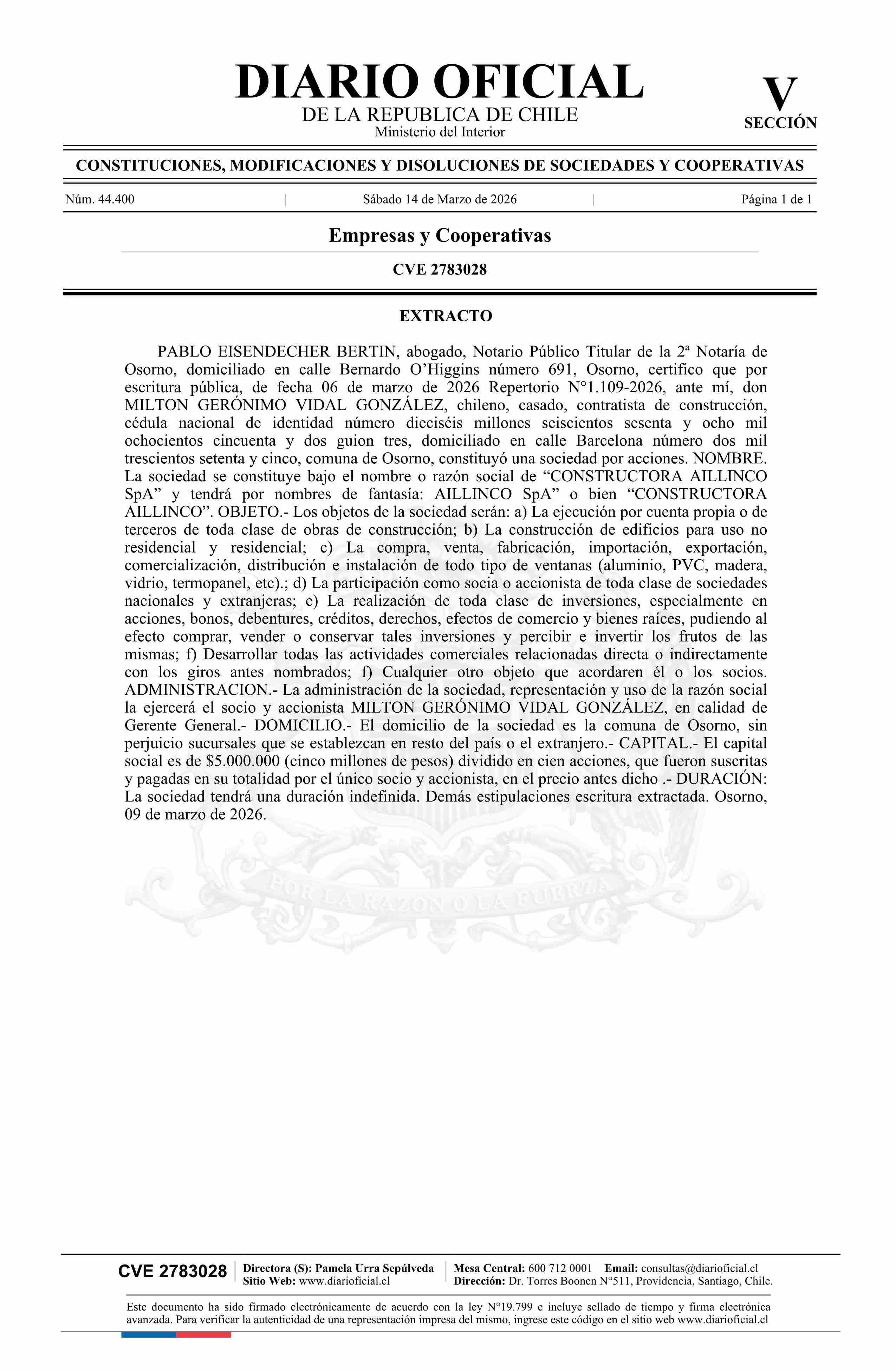 Fuente: Diario Oficial Edición Electrónica (Diario Oficial de Chile - 5 Empresas Y Cooper) Página(s): 39