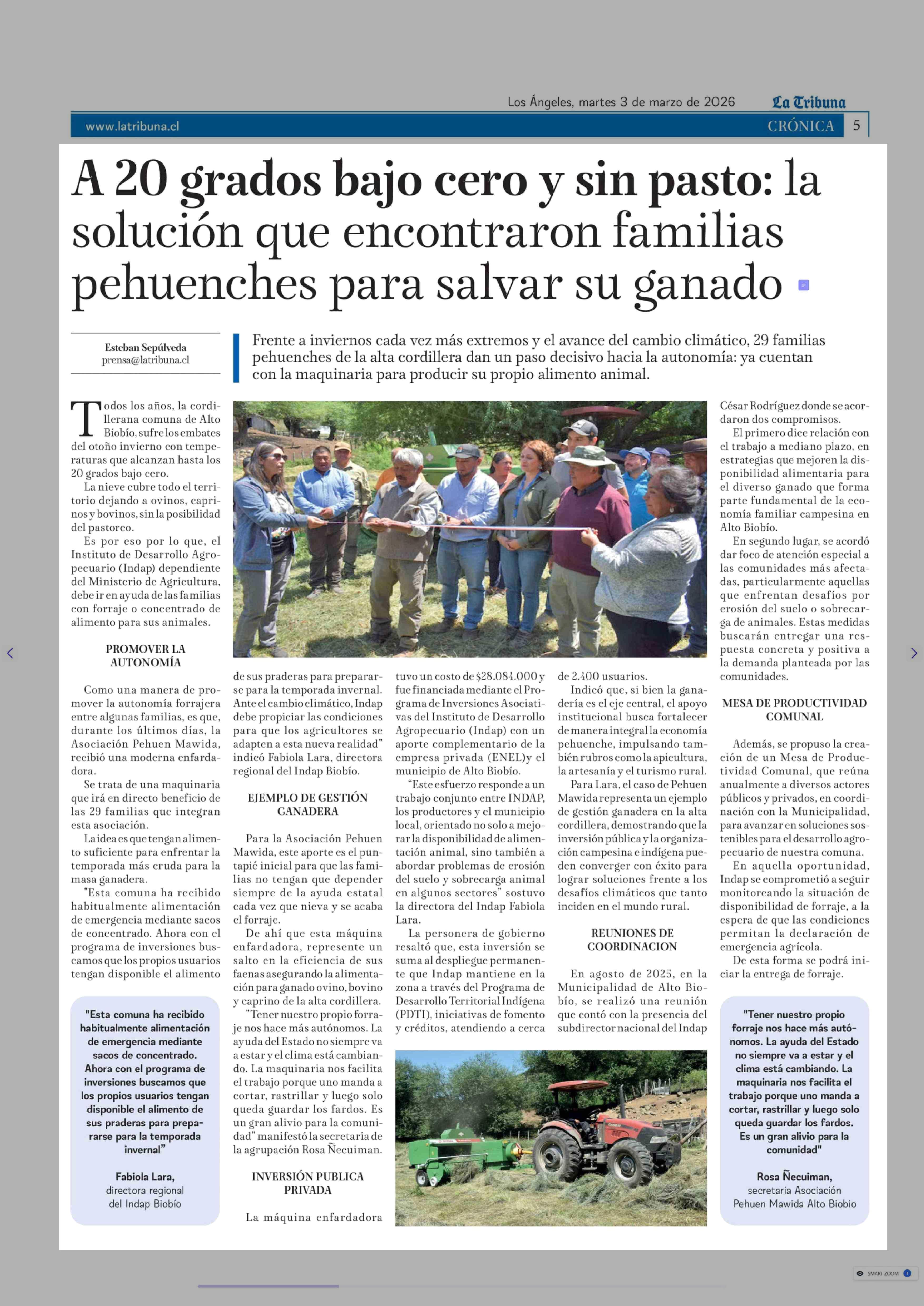 A 20 grados bajo cero y sin pasto: la solución que encontraron familias pehuenches para salvar su ganado 03-03-2026 La Tribuna |