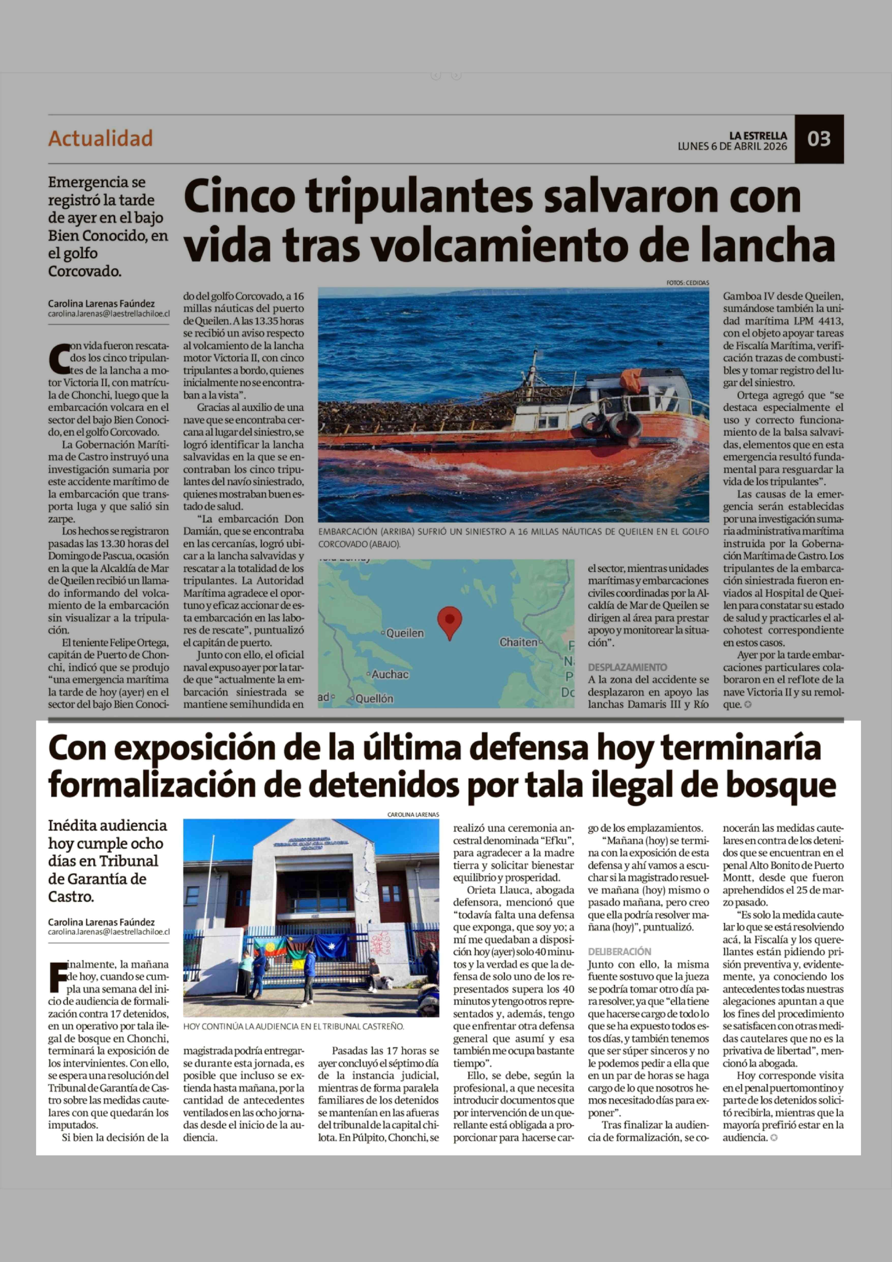 Con exposición de la última defensa hoy terminaría formalización de detenidos por tala ilegal de bosque 06-04-2026 La Estrella de Chiloé |