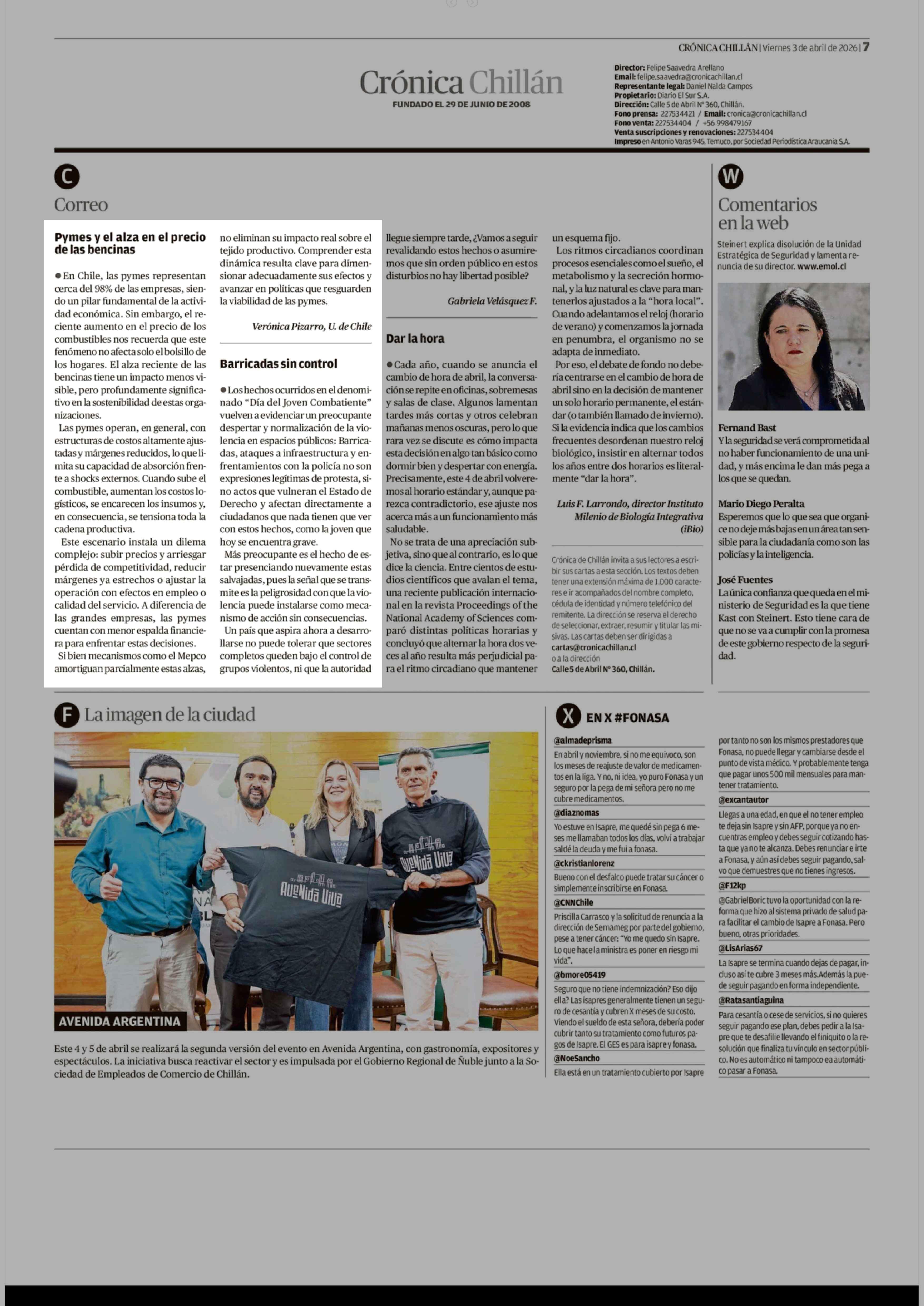 Cartas: Pymes y el alza en el precio de las bencinas 03-04-2026 Crónica de Chillán |