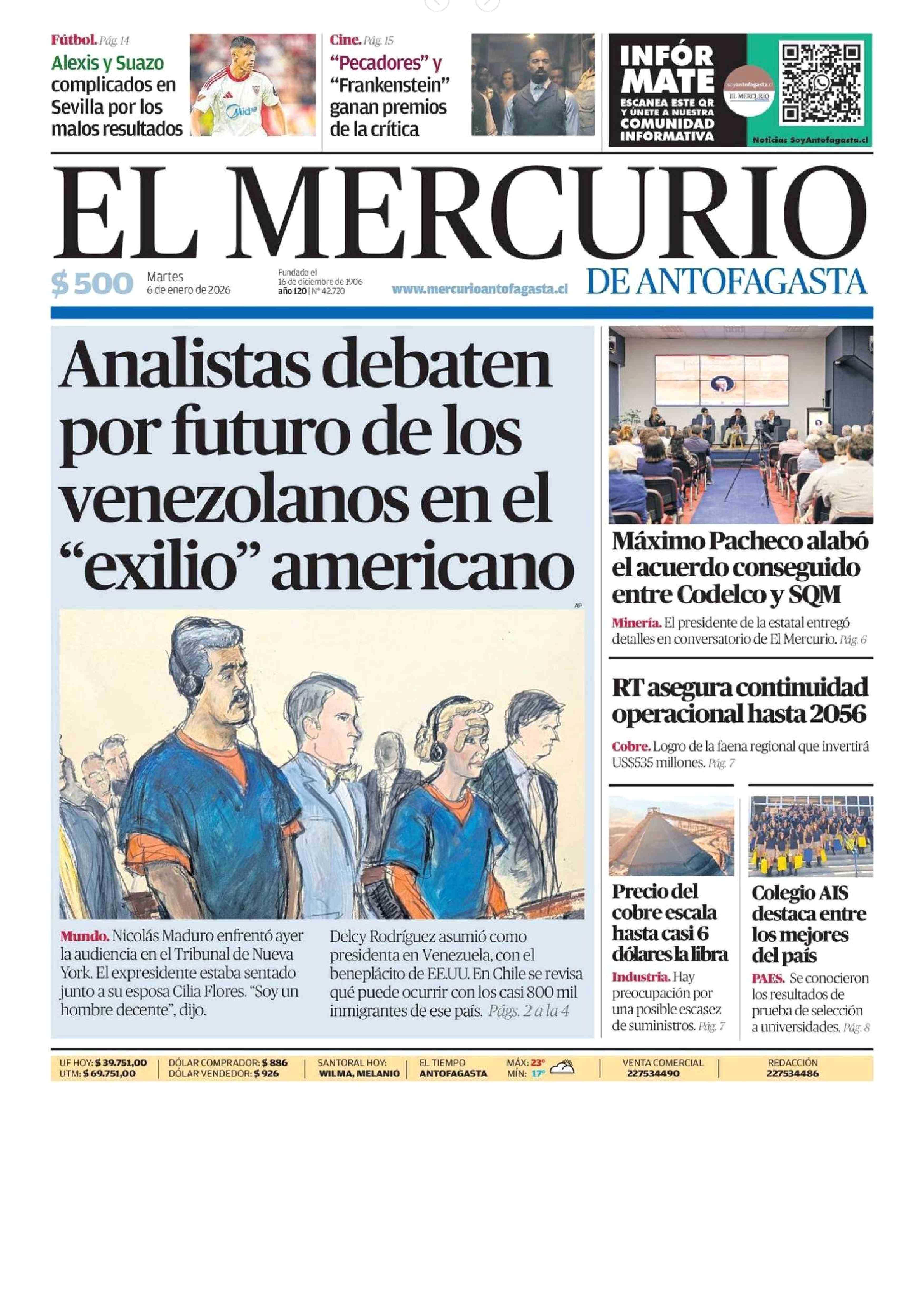 PORTADA EL MERCURIO DE ANTOFAGASTA CHILE 06-01-2026 El Mercurio de Antofagasta |