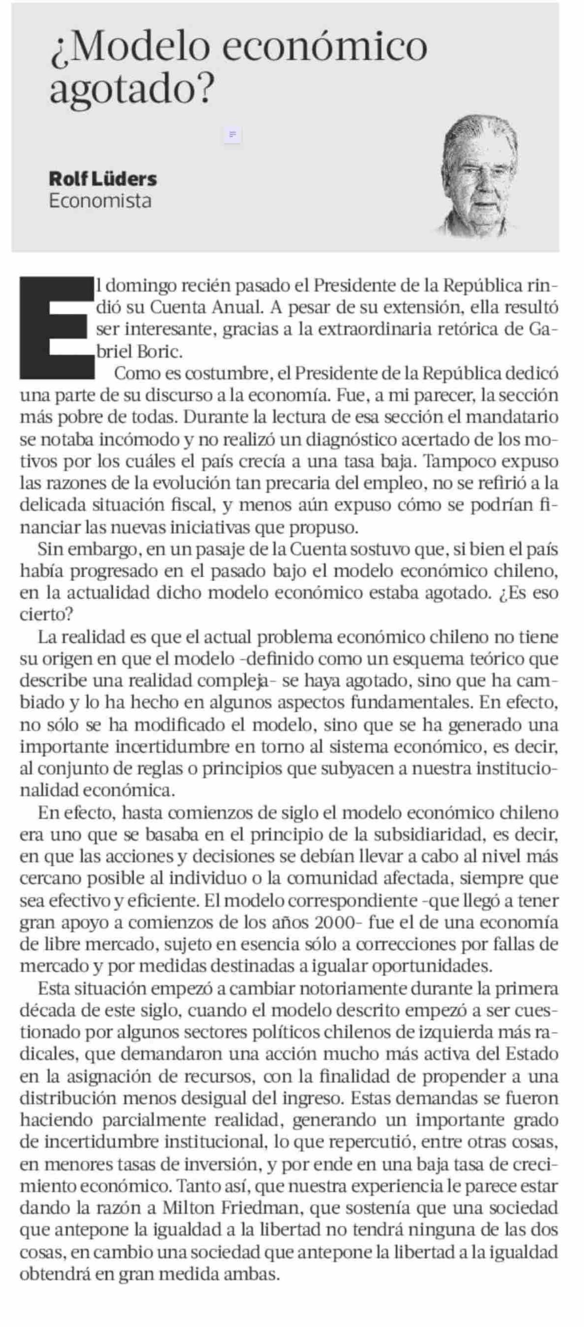 COLUMNAS DE OPINIÓN: ¿Modelo económico agotado? 06-06-2025 La Tercera |