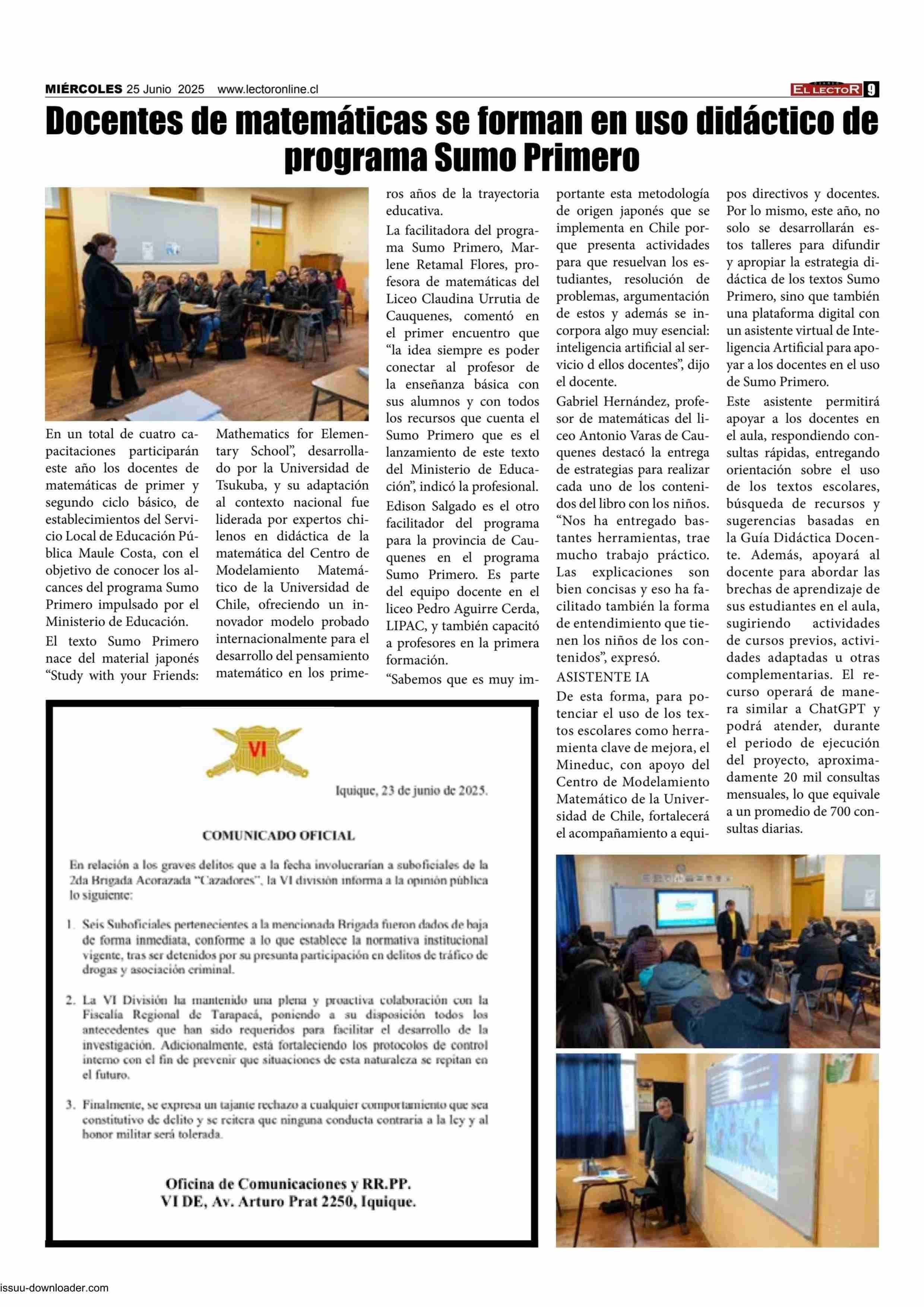 Docentes de matemáticas se forman en uso didáctico de programa Sumo Primero 25-06-2025 El Lector |