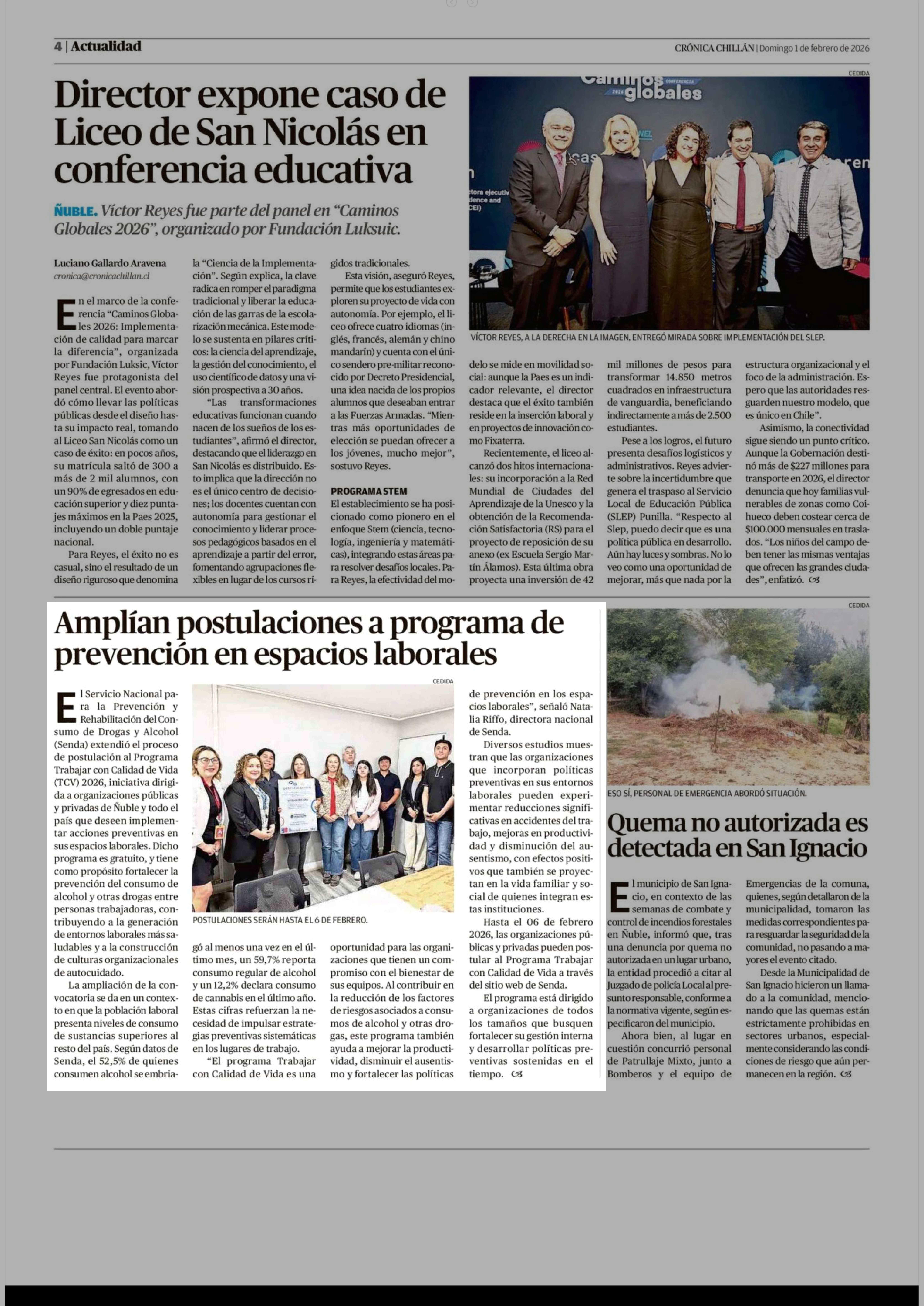 | Fecha: | 01-02-2026 | Sector: | Noticia general | Región: | Región del Ñuble |