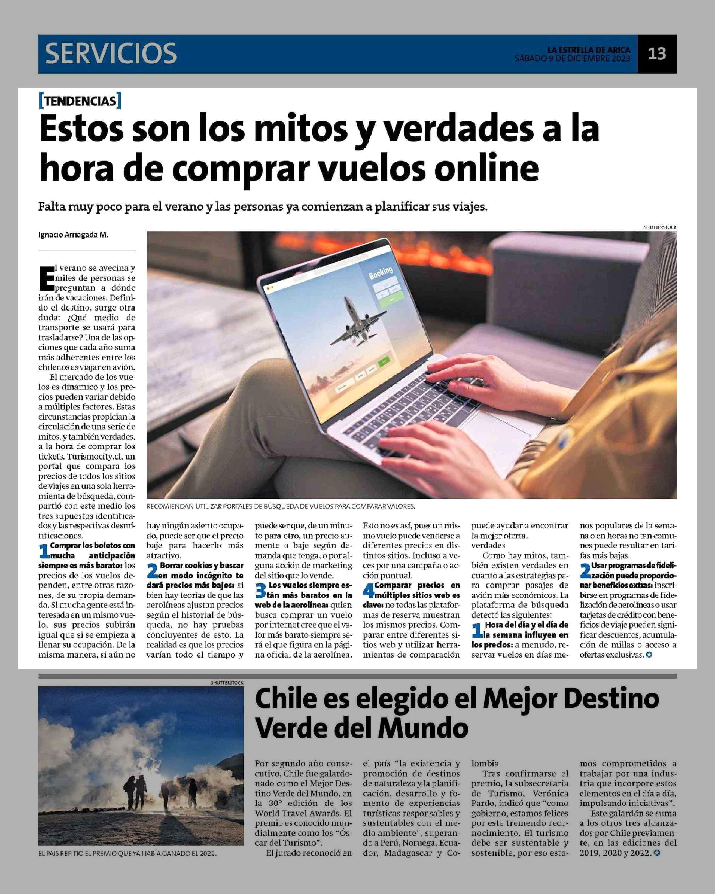 Estos son los mitos y verdades a la hora de comprar vuelos online 09-12-2023 La Estrella de Arica |