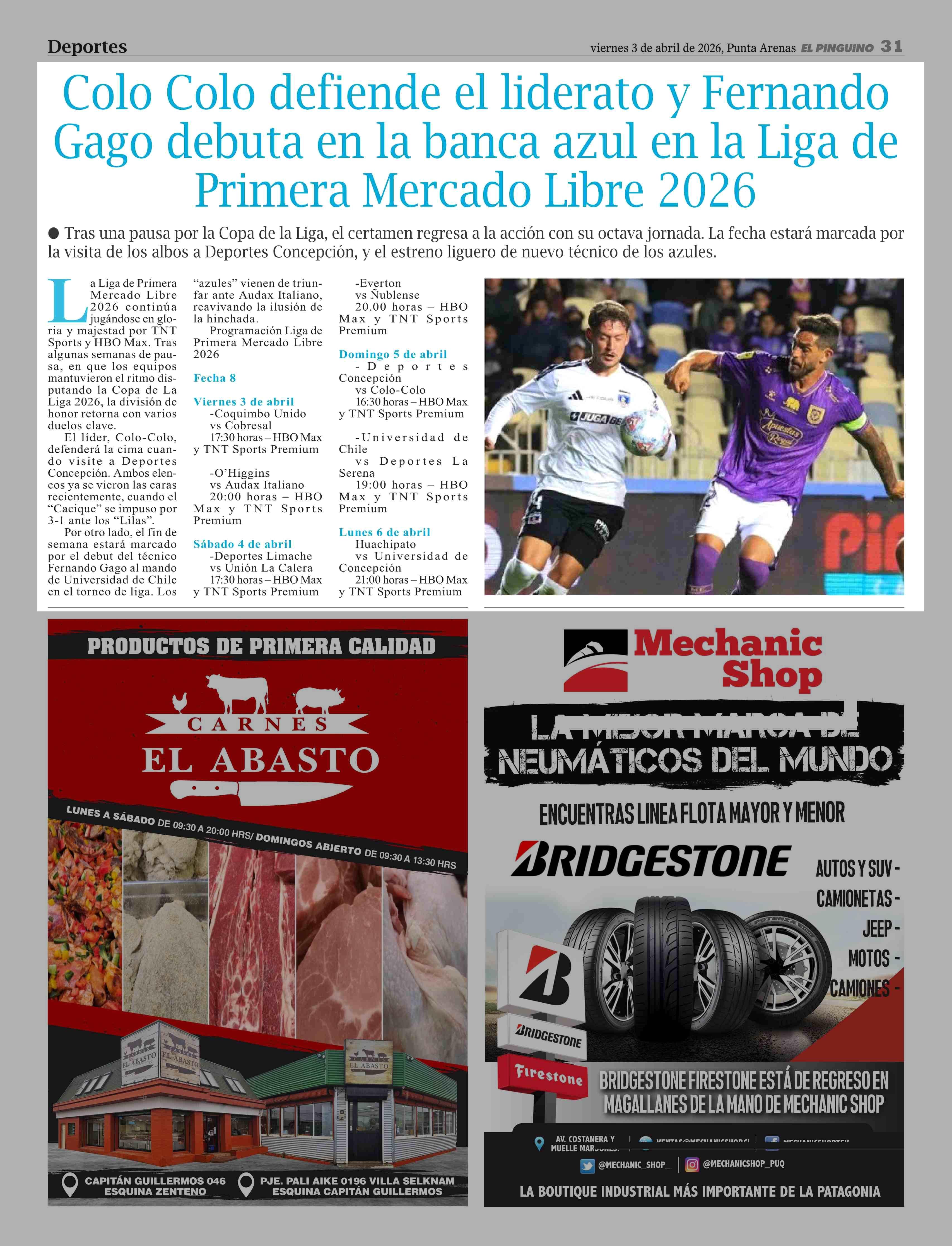 Título: Colo Colo defiende el liderato y Fernando Gago debuta en la banca azul en la Liga de Primera Mercado Libre 2026