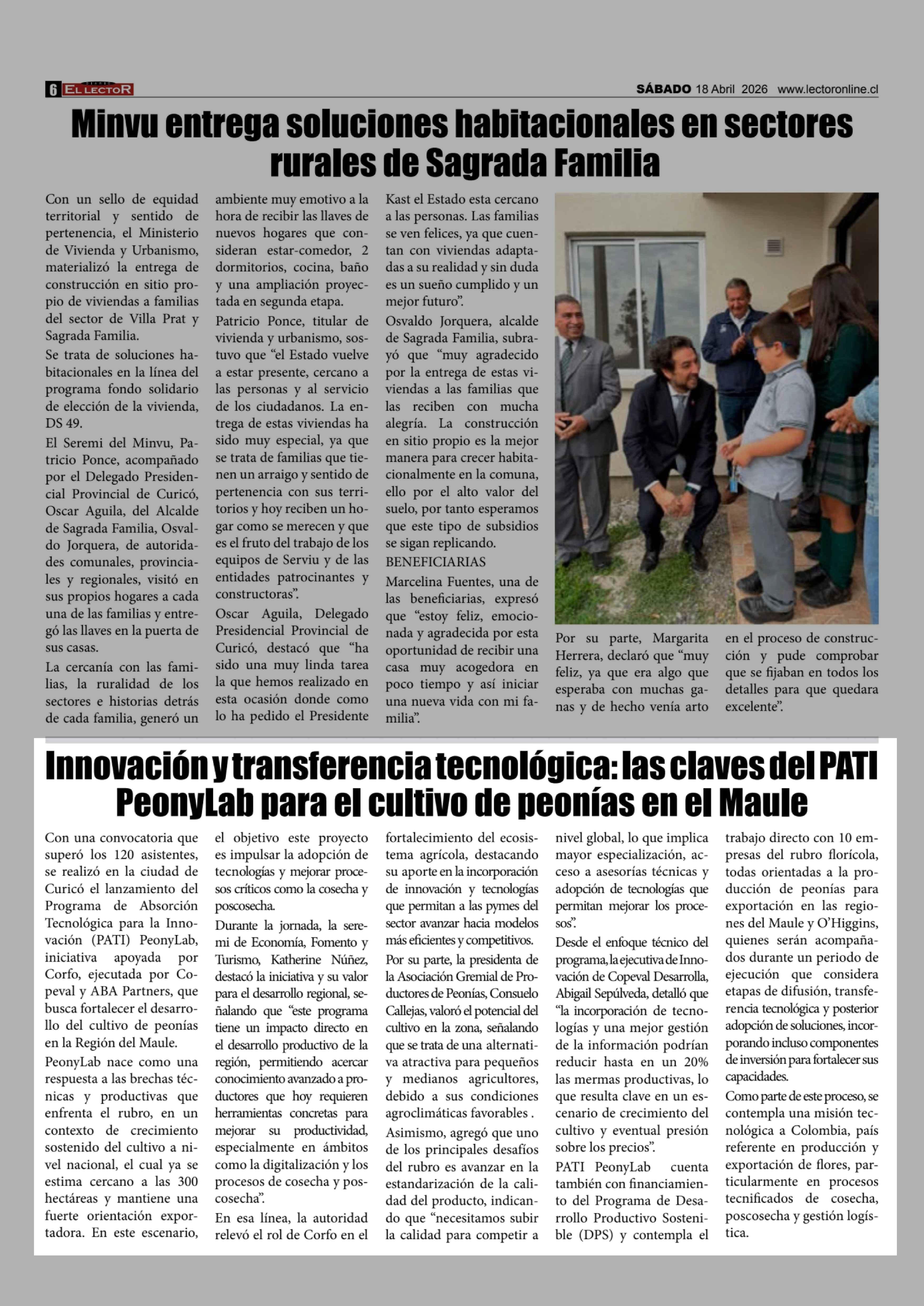 Innovación y transferencia tecnológica: las claves del PATI PeonyLab para el cultivo de peonias en el Maule 18-04-2026 El Lector |