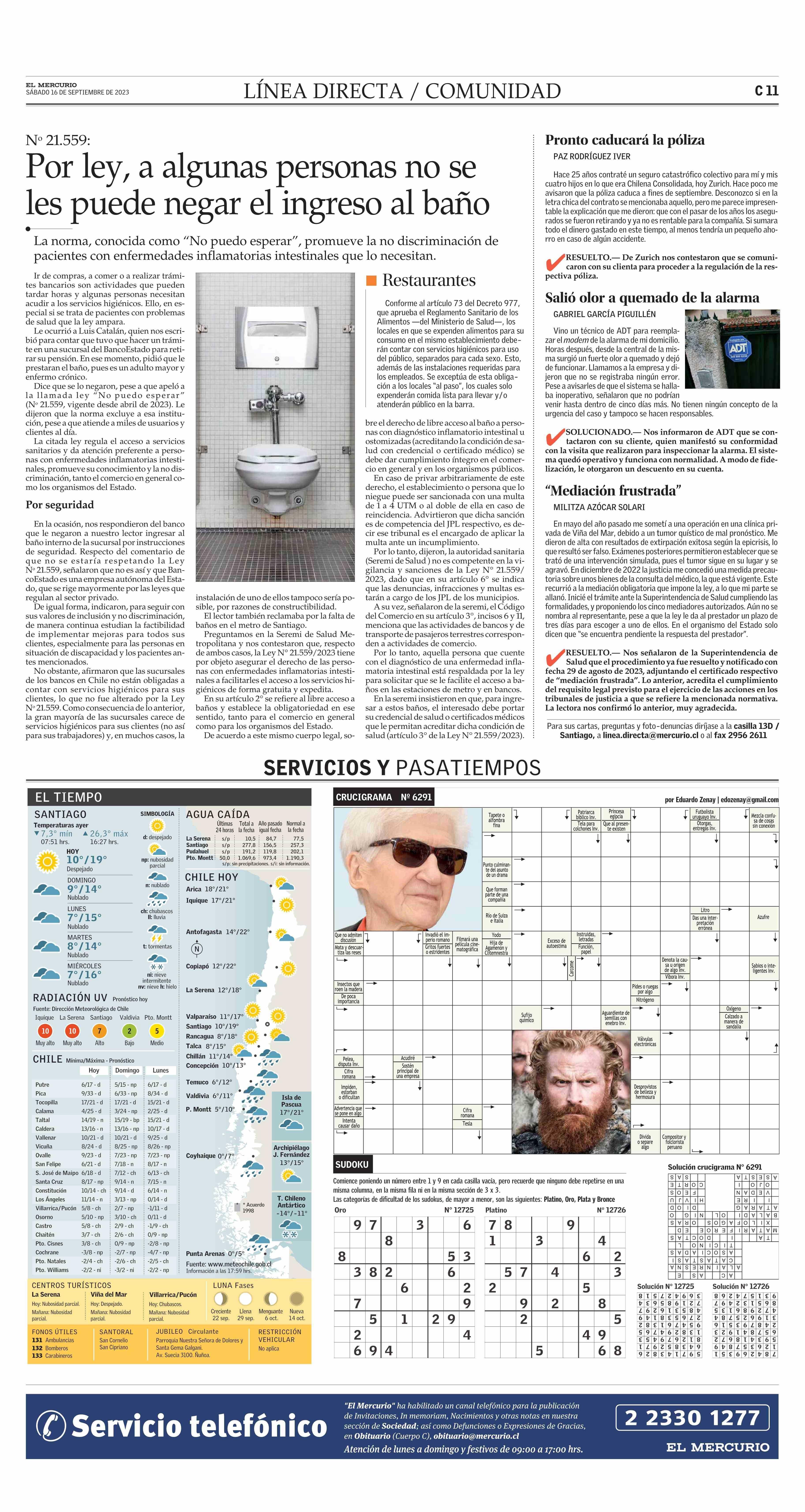 Por ley, a algunas personas no se les puede negar el ingreso al baño 16-09-2023 El Mercurio |