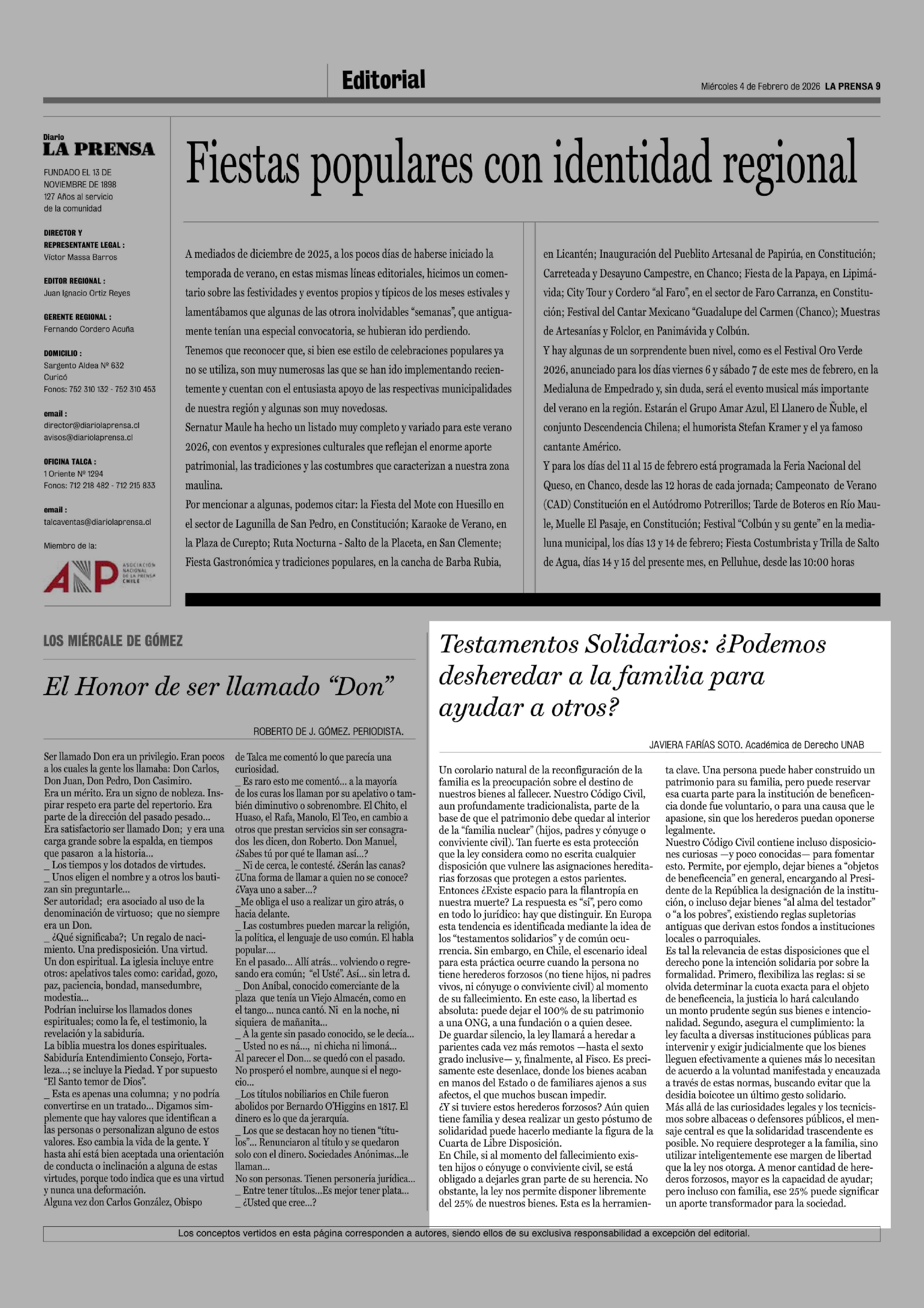 Fecha: 04-02-2026 Sector: Columnas de Opinión Región: Región del Maule