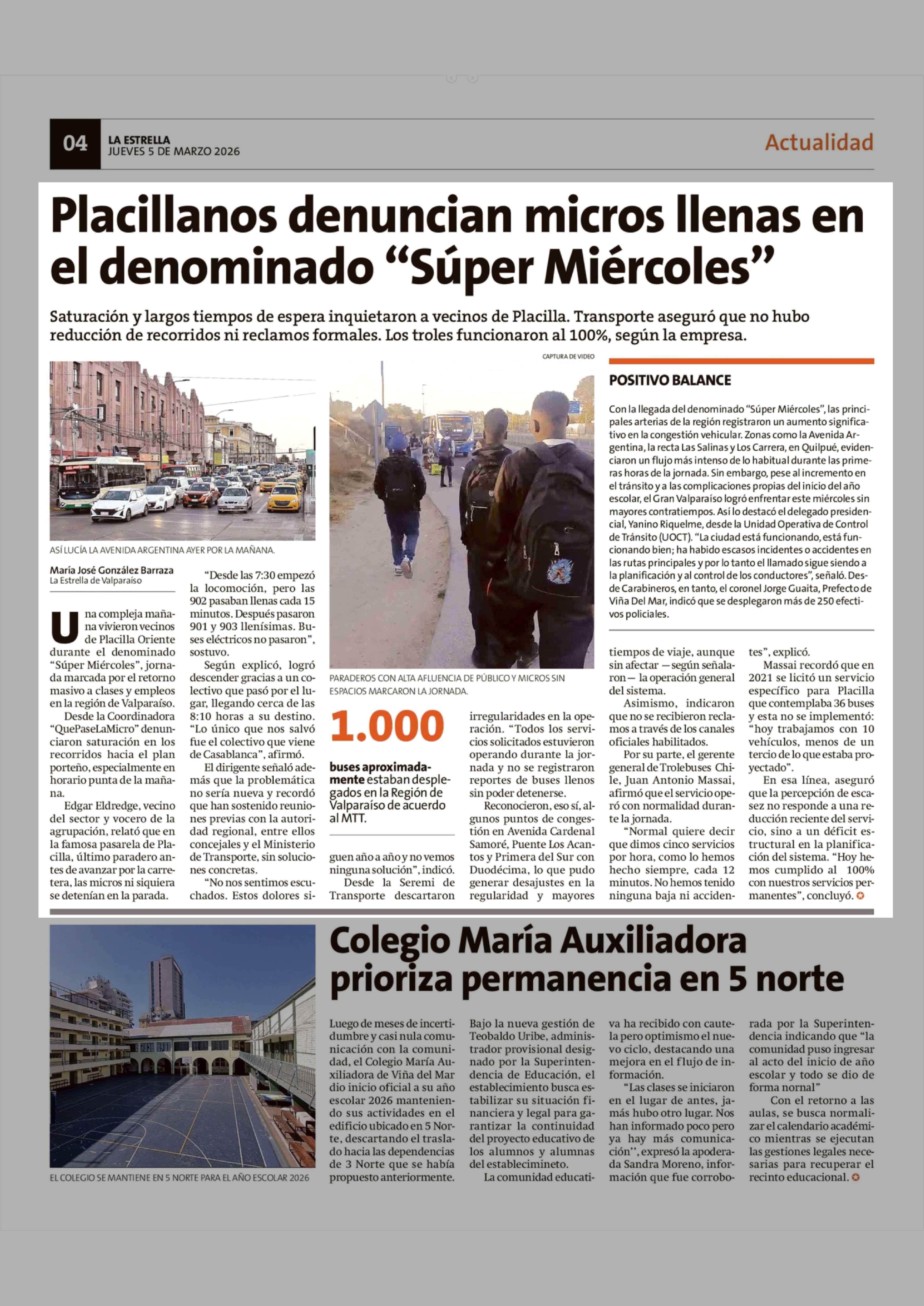 Título: Placillanos denuncian micros llenas en el denominado "Súper Miércoles"