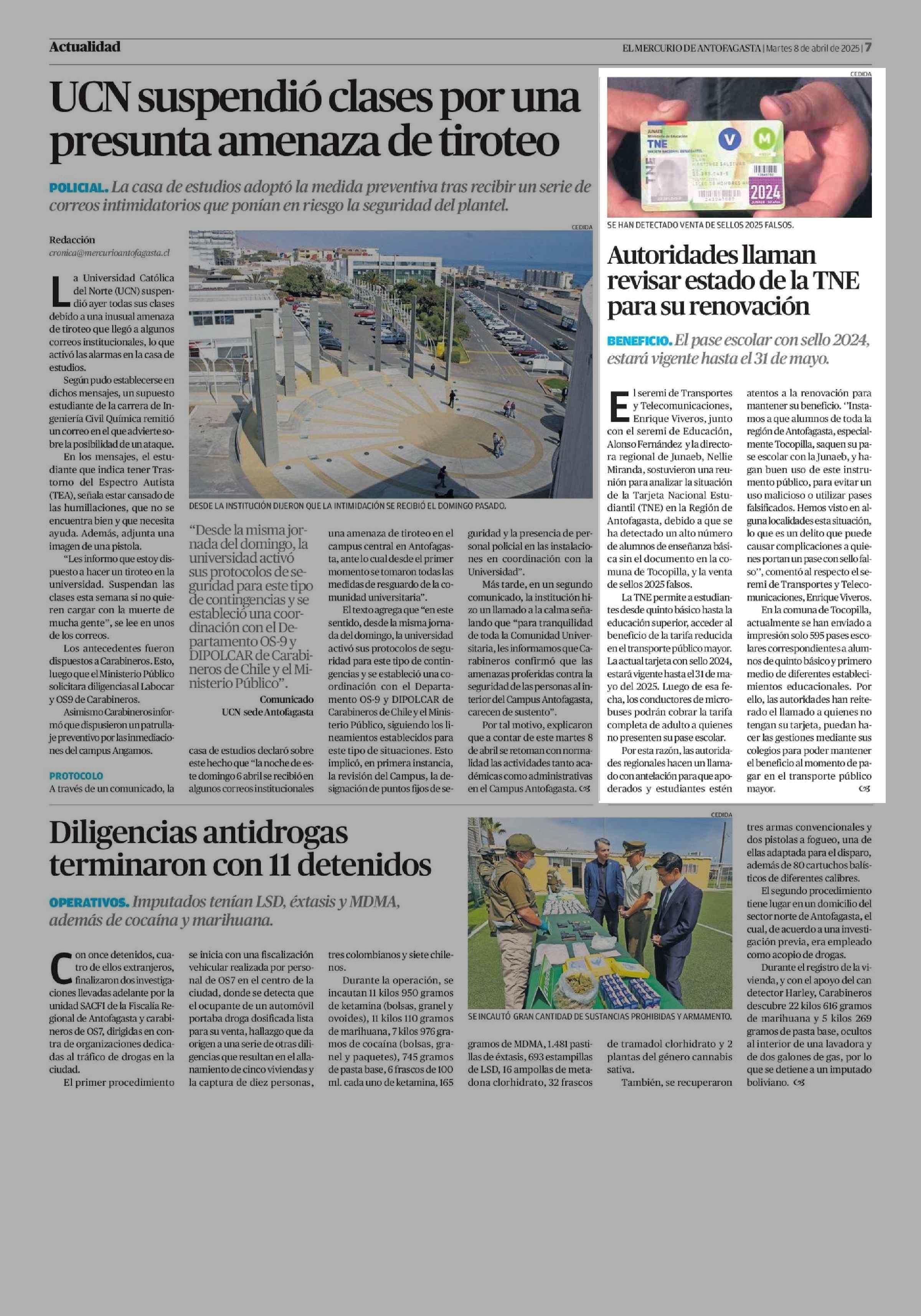 Autoridades llaman revisar estado de la TNE para su renovación 08-04-2025 El Mercurio de Antofagasta |