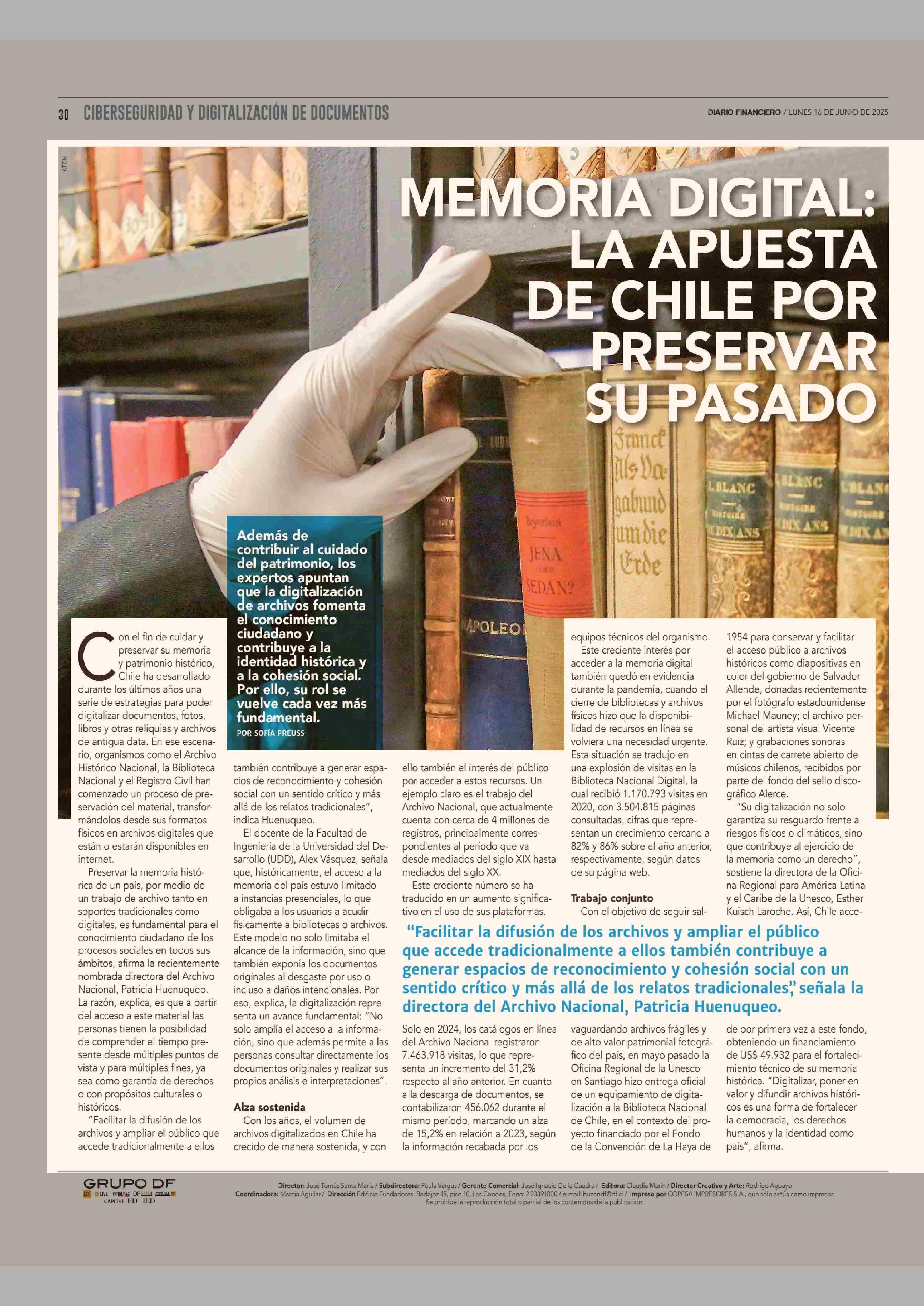 MEMORIA DIGITAL: LA APUESTA DE CHILE POR PRESERVAR SU PASADO 16-06-2025 Diario Financiero |