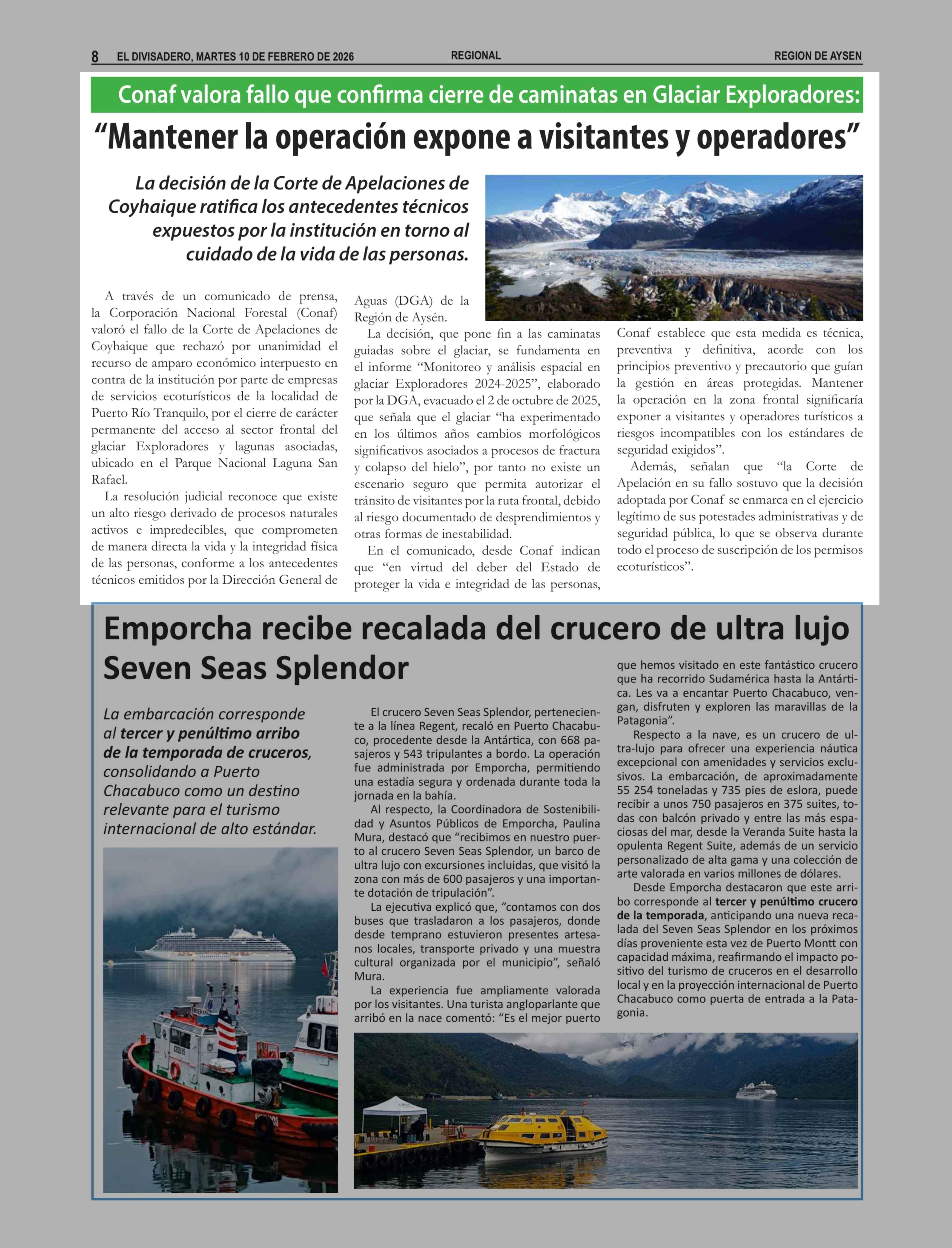 Fecha: 10-02-2026 Sector: Noticia general Región: Región Aysén del General Carlos Ibáñez del Campo