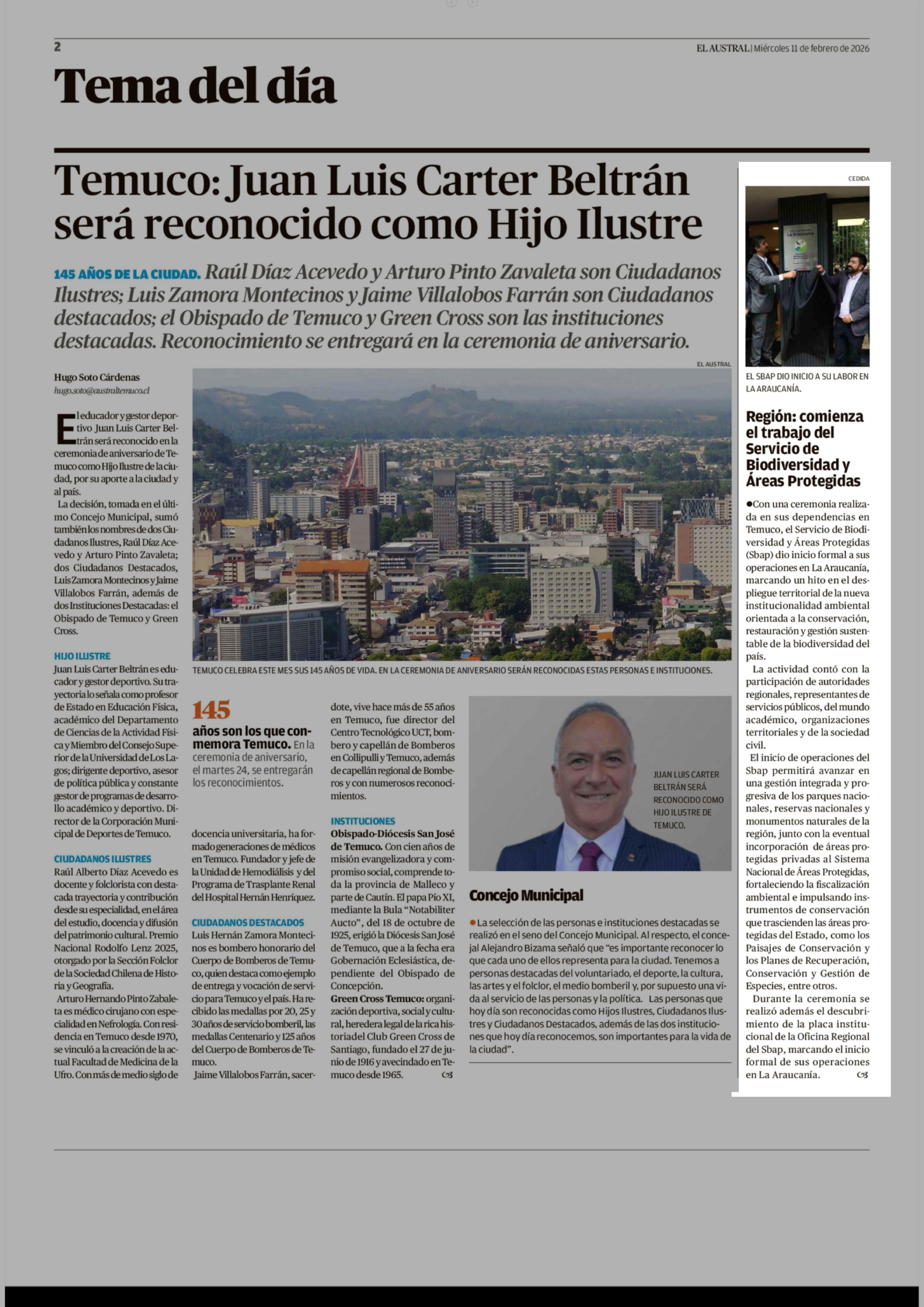 | Fecha: | 11-02-2026 | Sector: | Noticia general | Región: | Región de la Araucanía |