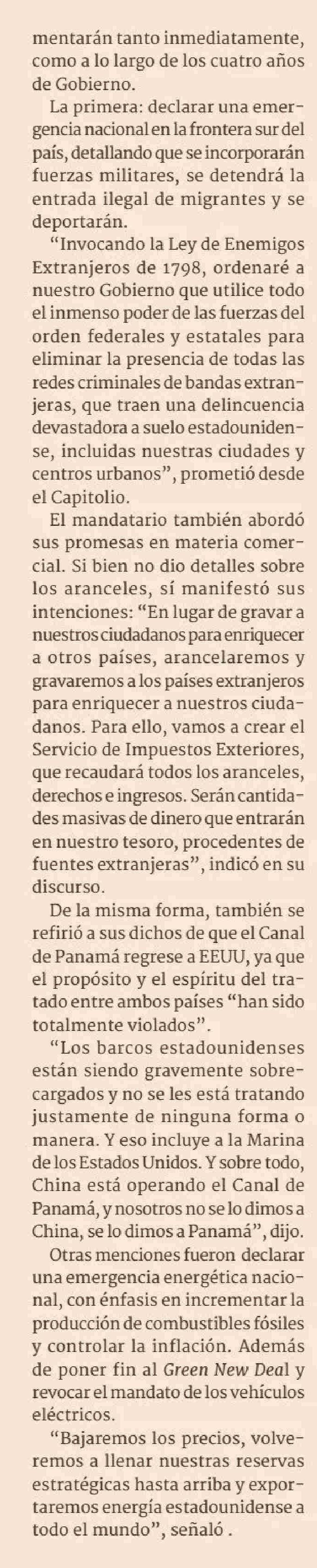| Título: | Trump jura para un nuevo periodo presidencial y asegura: “El declive de Estados Unidos ha terminado” |